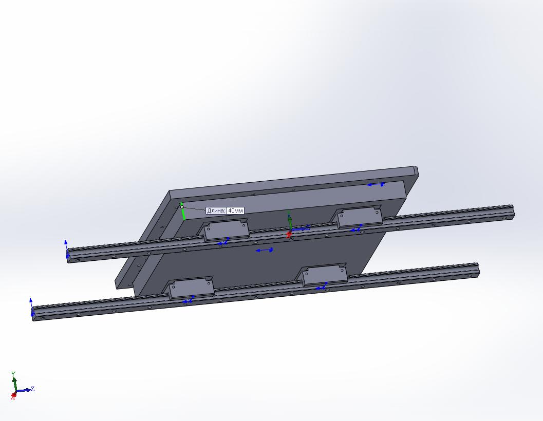 запас хода стола по оси 20мм, рельсы 1000мм.