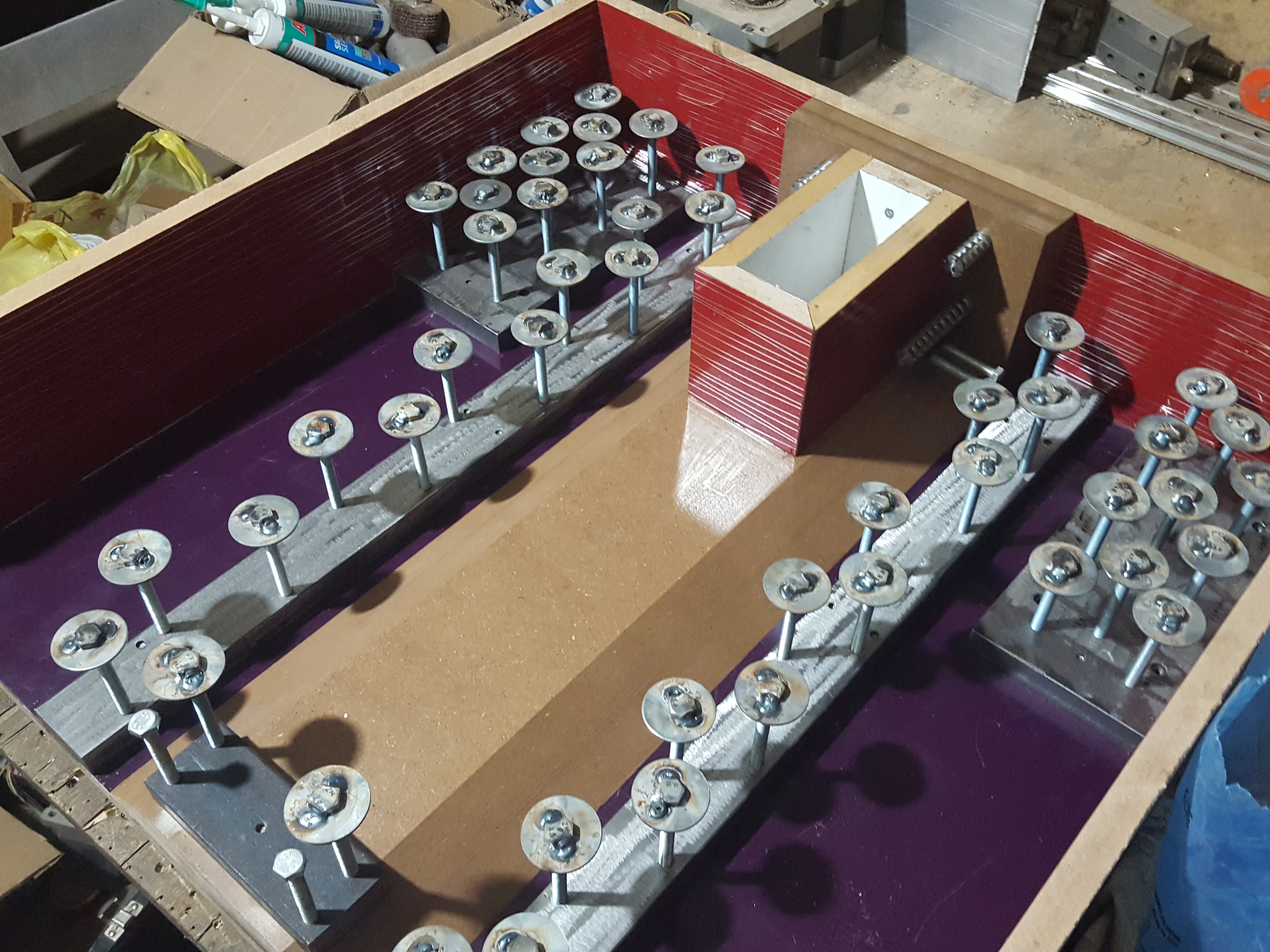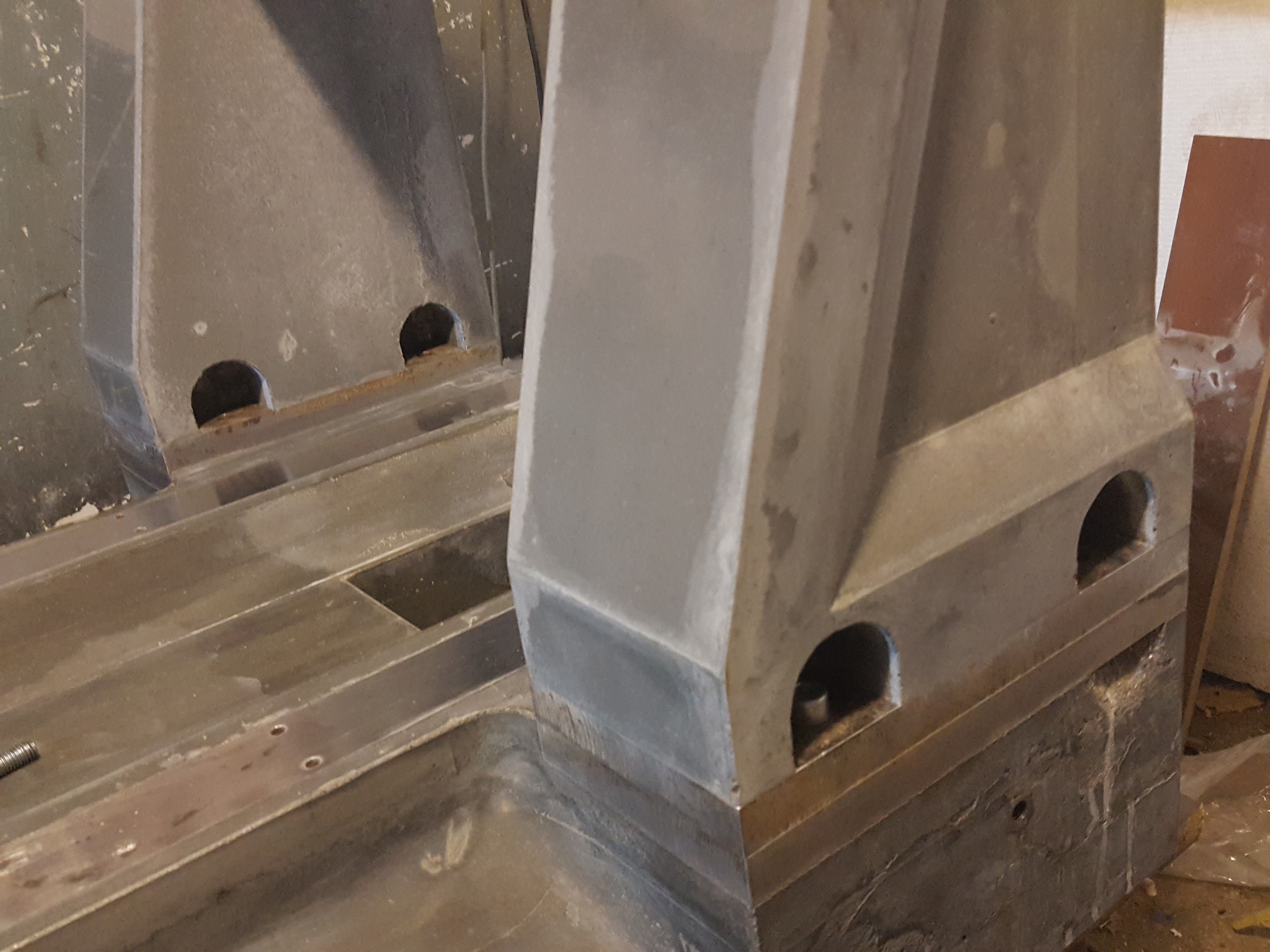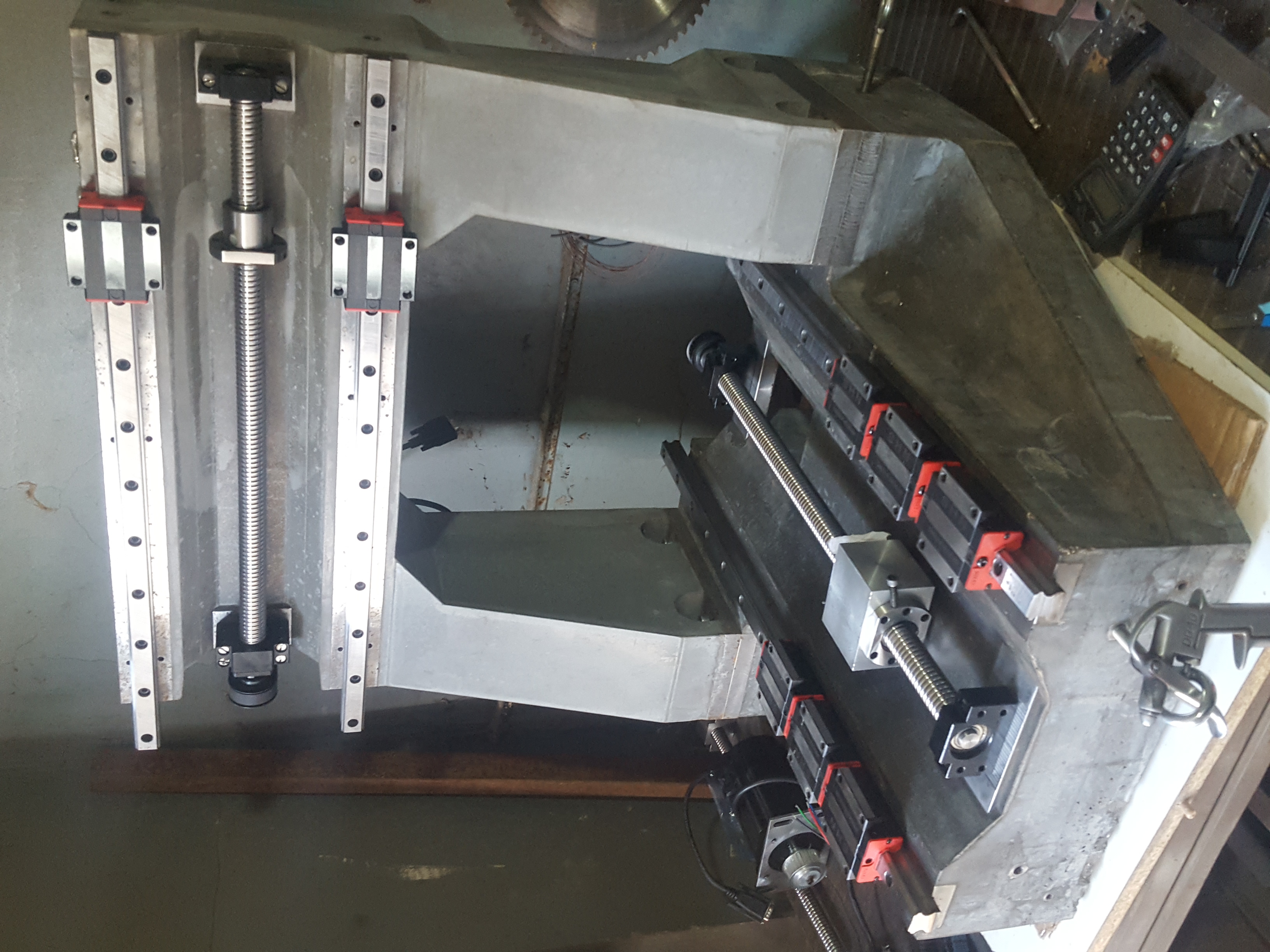 Под направляющие использовал полосу 20*50, длина 660мм, отдал на шлифовку до установки в форму... Под рельсы на "У" где стол, постели отфрезерованы, под "Х" не получилось, потому как не влез под фрезерный...Бармалей писал(а):Как поверхности для направляющих получены?
