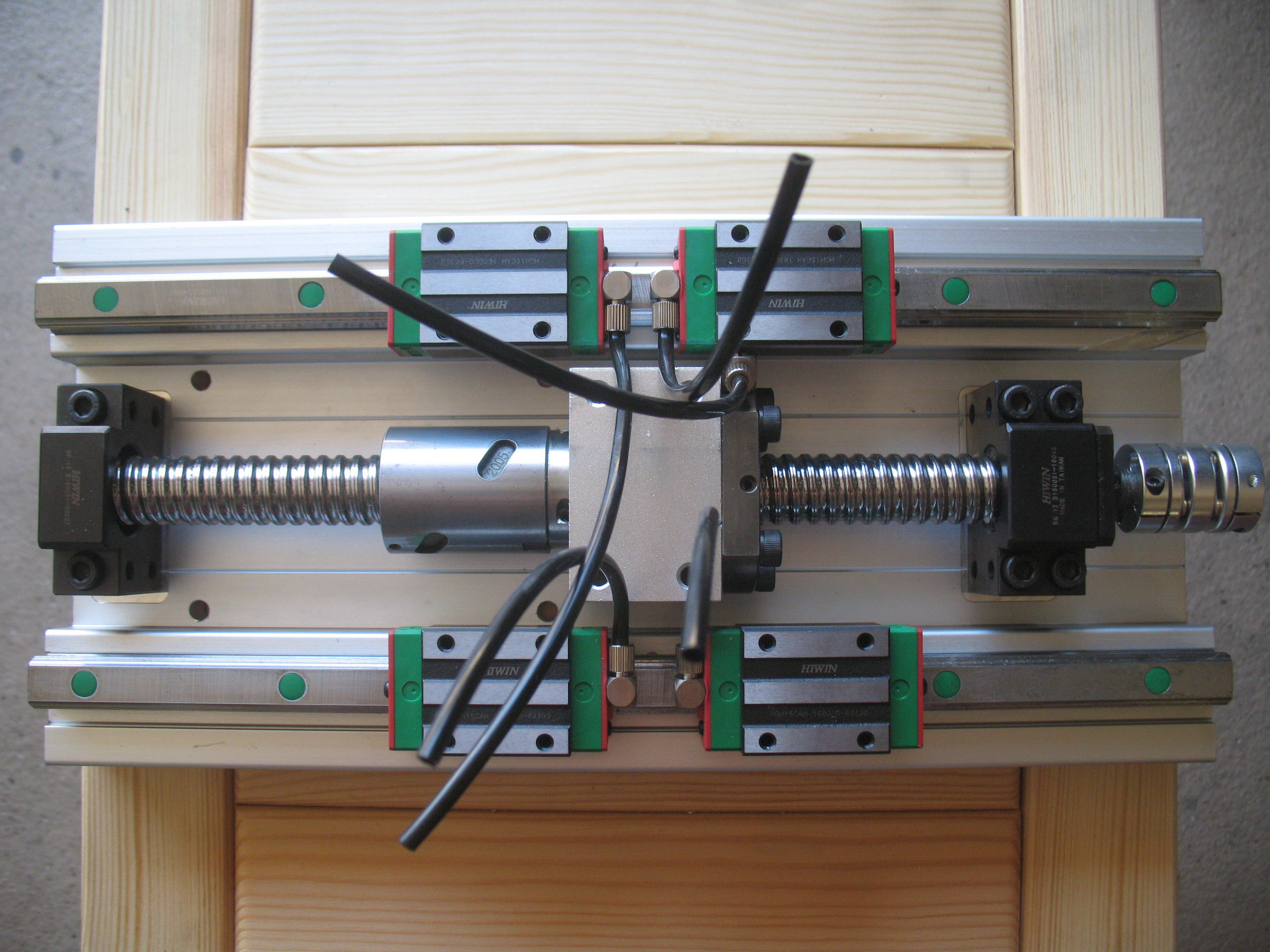 На всех осях винты TBI 2005 С7 с двойными фирменными гайками, опоры винтов Hiwin, муфты мембранные.