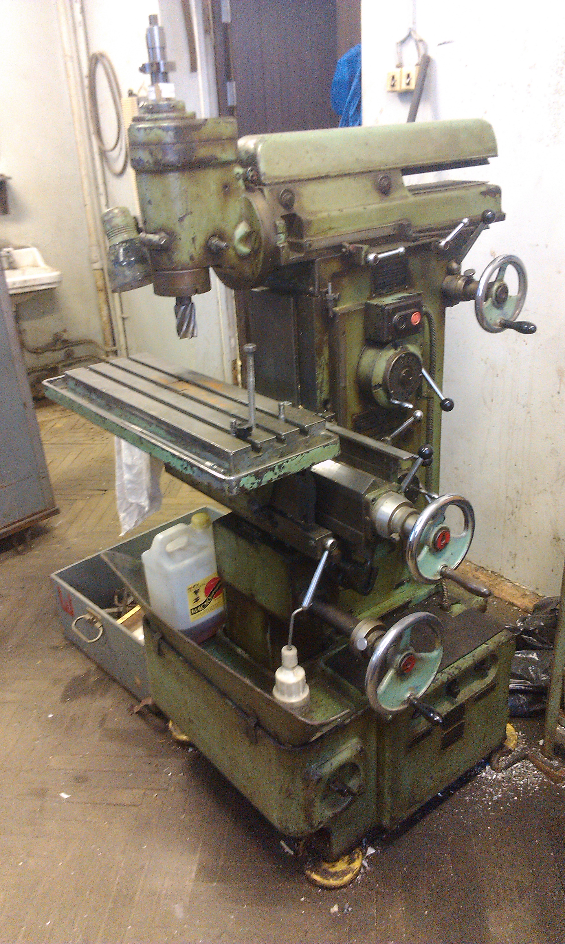 Досталась мне мастерская с 2-мя станками. Вот первый. Фрезерный станок модель 675, Одесса. По паспорту конус Морзе 4. Для этого станка планирую прикупить цанговый патрон типа такого: http://www.instanko.ru/index.php?productID=752.