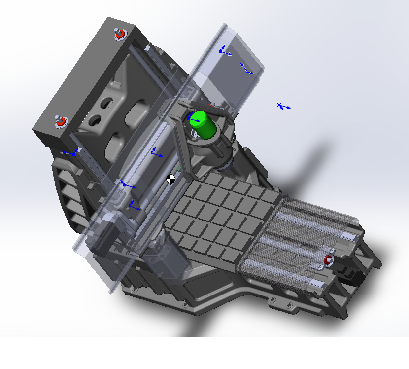 Хмм.. как по мне так зря.. я бы крепко подумал об одном винте по центру. переиграть балку чуть домиком. нижний край винта оставить на уровне или даже чуть ниже арки балки.. всеравно шпиндель ниже будет выступать. в ровень с ним.. и очень даже ничего будет. нафиг два то на такую конструкцию. 325 между рельсами не много. один спокойно справится..
