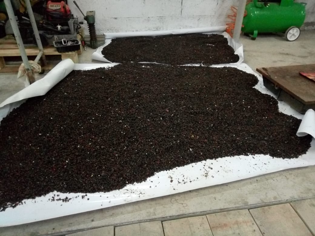 Не обошлось без нежданчиков. Купленная зимой гранитная фракция (фасованная!) оказалась не пригодной в том виде, в котором была поставлена. Мокрая, солёная и грязная. Так что 4 часа было потрачено на перемывку центнера этого хозяйства: