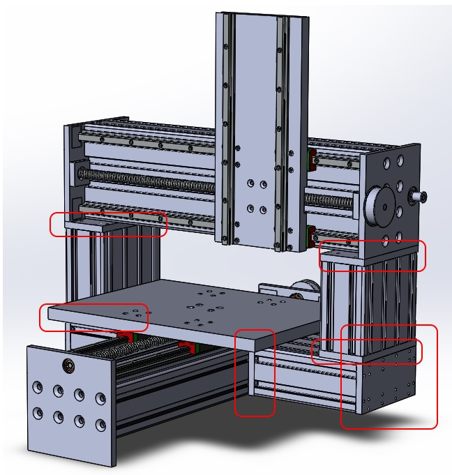 Описание станка, основные характеристики: Вот и меня потянуло спроектировать свой "идеальный" станок. Станок должен быть компактный и лёгкий для комфортного использования дома, при этом обладать достаточной жёсткостью для неторопливой фрезеровки алюминия. Для изготовления планируется задействовать уже имеющийся станок, поэтому крайне желательно чтоб габариты деталей не превышали формата А4. Так же в связи с использованием станка в жилой квартире и приближающийся свадьбы, чтоб лишний раз не отхватывать, станок хотелось бы спрятать в кабинет, недопускающий разлёт пыли и стружки. Из комплектующих есть три сервы minas A5 100Вт, желательно их задействовать в проекте.