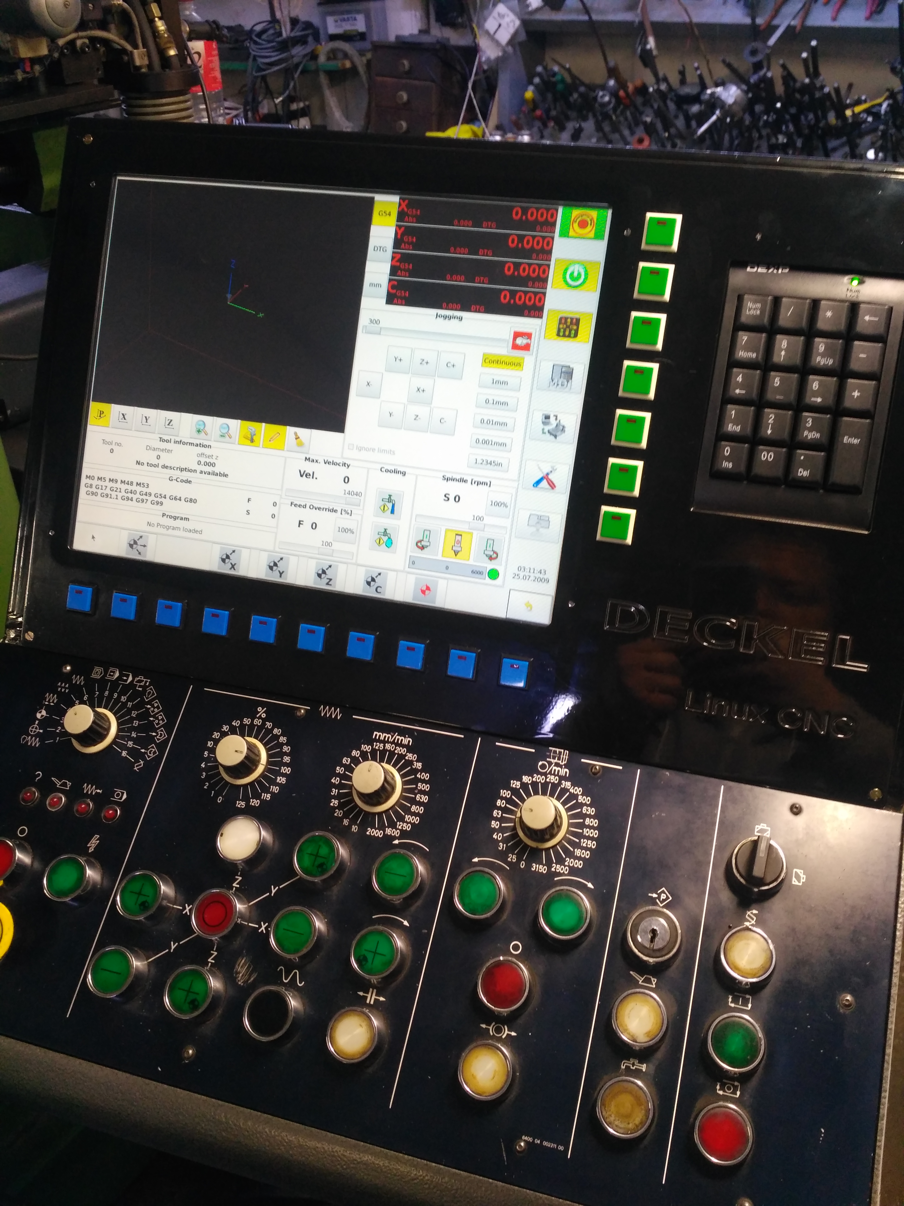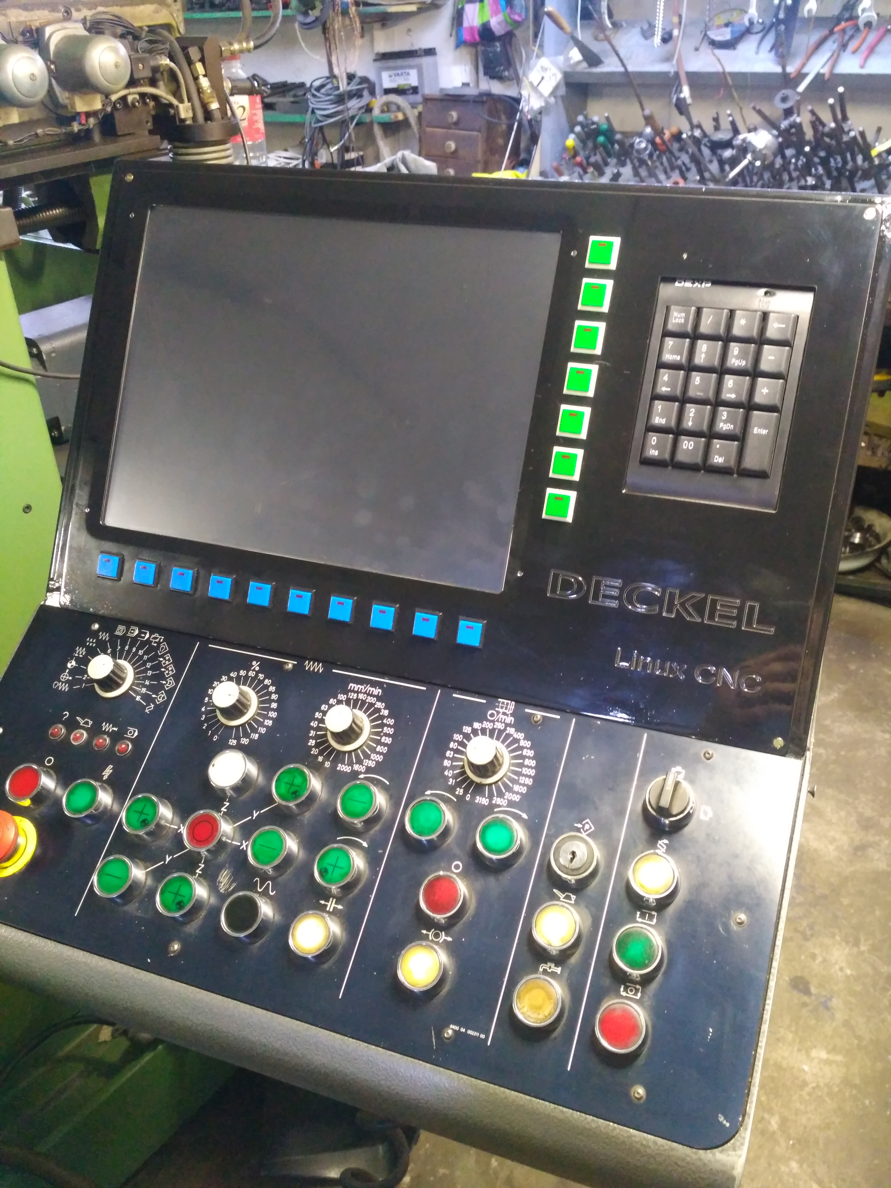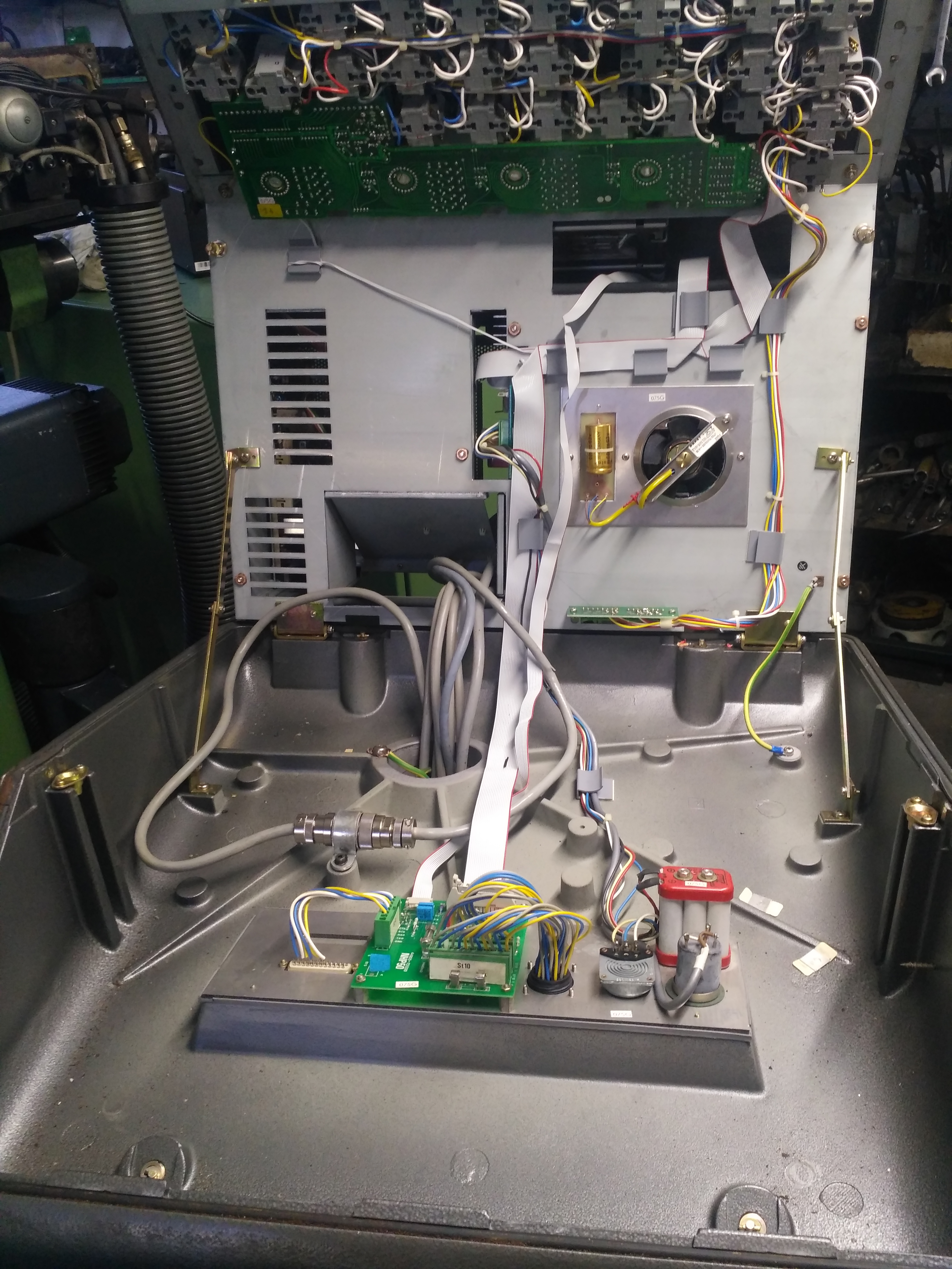 Немного подзавис с периферией. В оригинале в шкафу с усилителями стоит древняя PLC. Она обрабатывает всю периферию. Не хочу глобально лезть в проводку. Поэтому решил ставить в шкафу либо Arduinо либо современную PLC(если получится) и по modbus связать с LCNC. Таким образом комп с монитором будет в родном пульте а ПЛК со всеми I/O в шкафу. Но в этом вопросе надеюсь на помощь сообщества.