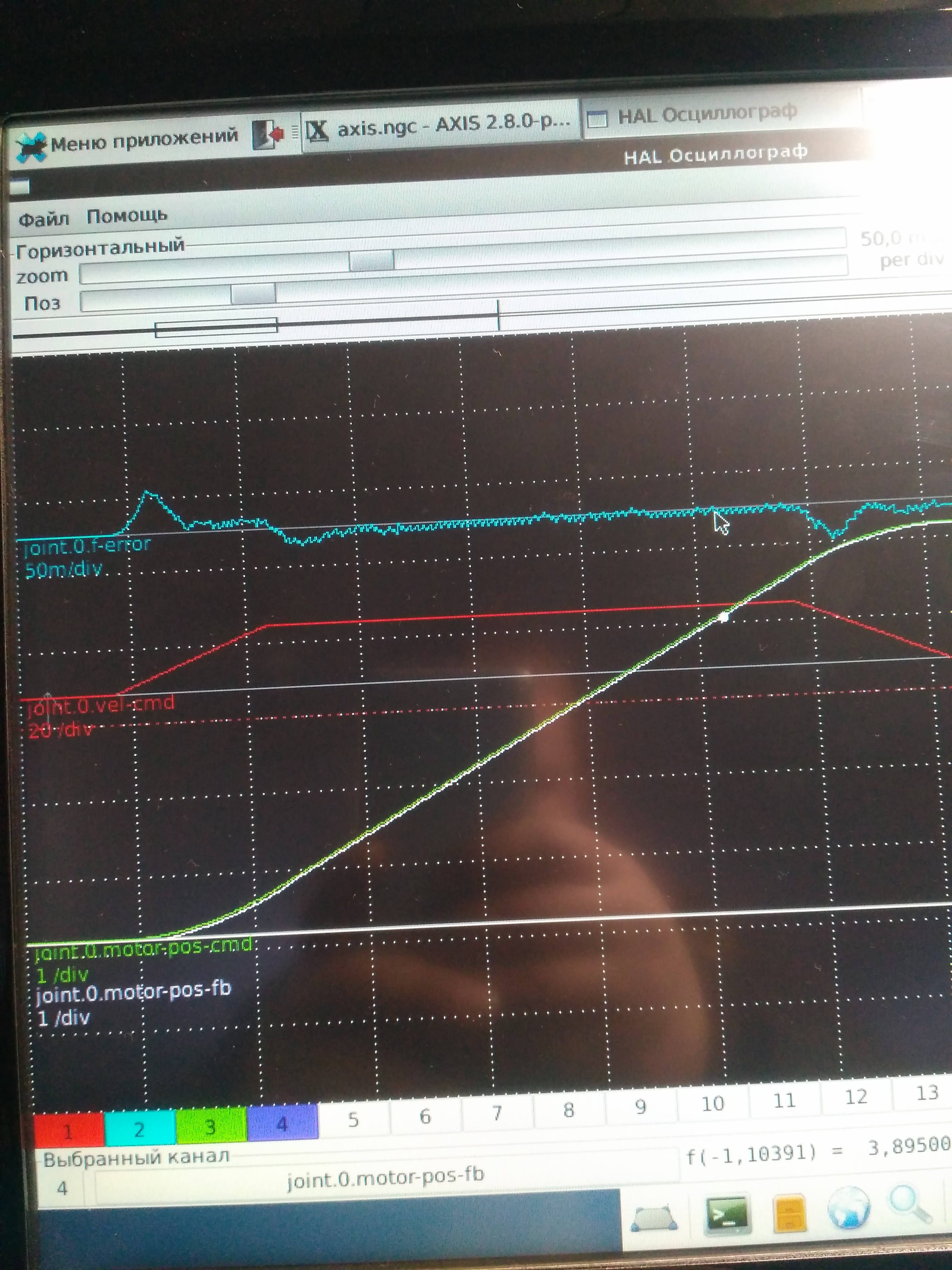 Да железом конечно. ОС по линейкам. Это на G1 перемещение на 5 мм. Картина не меняется на 1500мм/мин. Не думаю, что в работе потребуется больше. Всё же станок для силовой обработки.