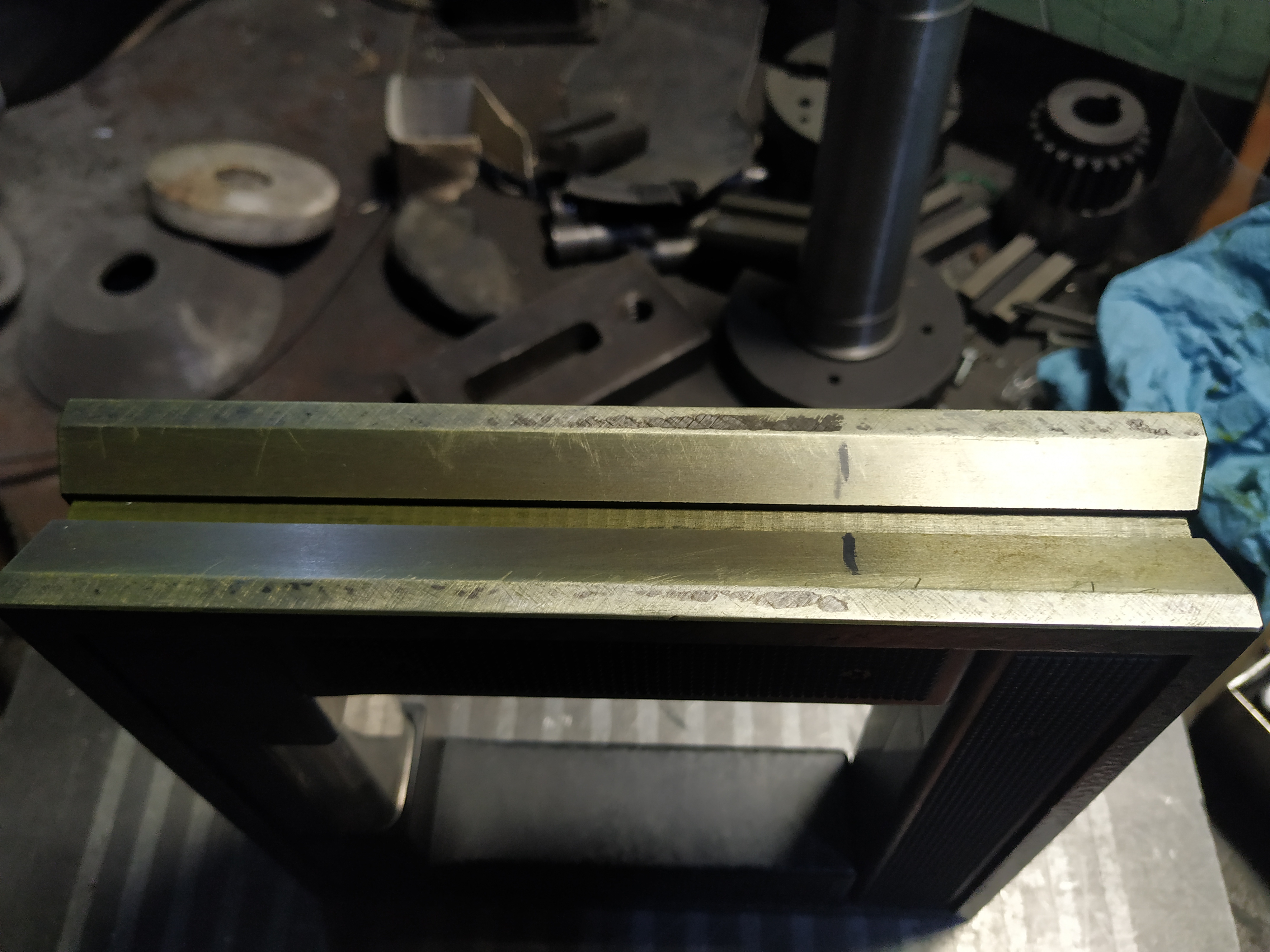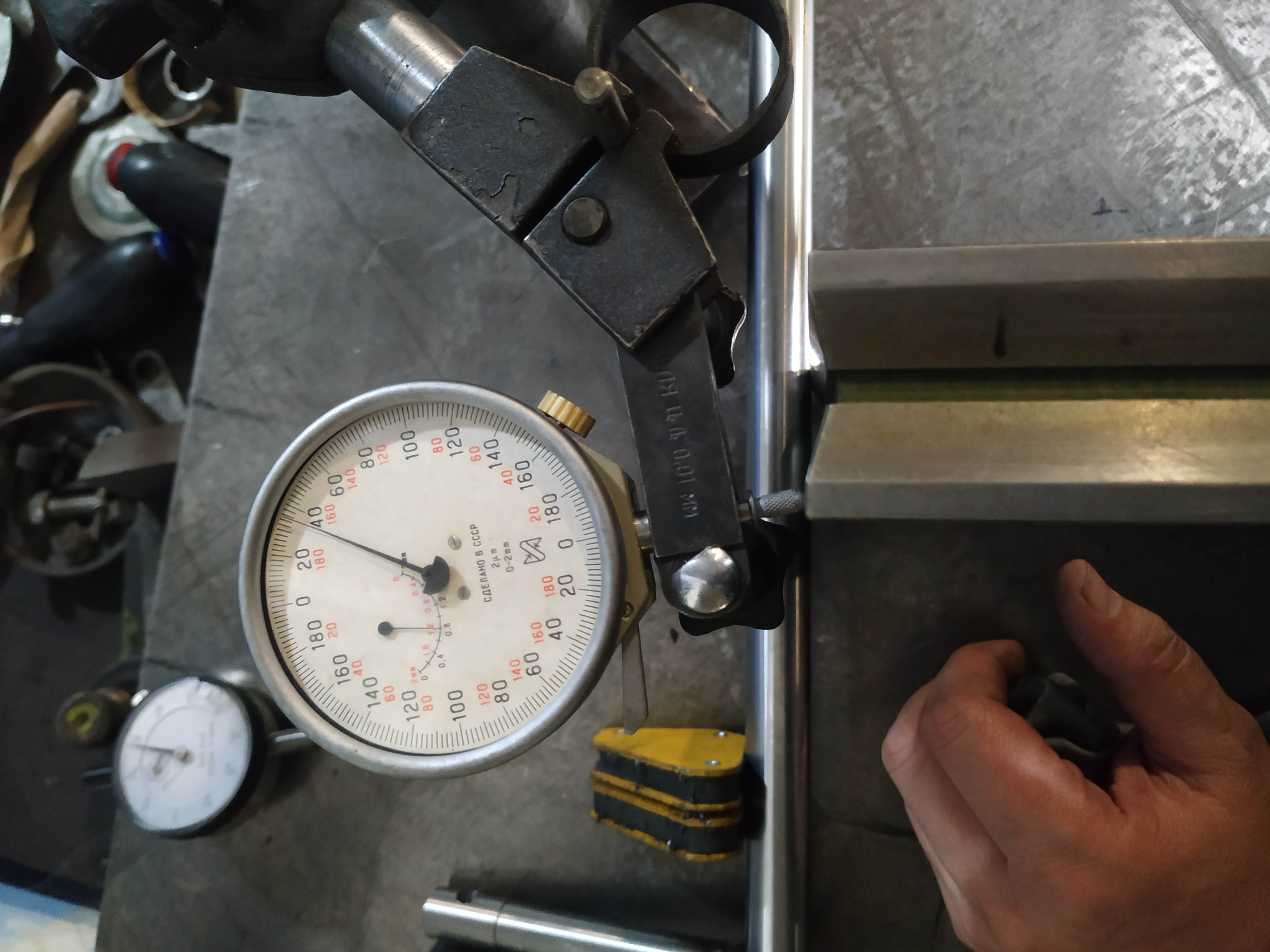 Закончил 1 плоскость и начал 2ю и тут меня ожидал неприятный сюрприз, плоскость шпинделя оказалась не перпендикулярной плоскости ползуна.