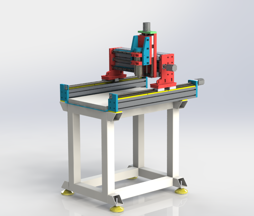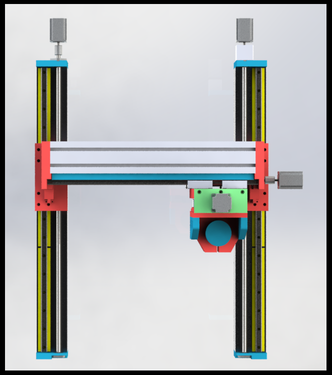 За основу будущего станка взят проект фрезерок по люминю 800х400х170 из профиля уважаемого frezeryga и творчески переработан исходя из моих потребностей, а также исходя из оставшихся комплектующих. В чистоте планирую получить рабочее поле 680х440х160 В изготовлении применяется алюминий Д16Т 30 и 20мм, красный и синий цвет на модели. А также АД31 10мм - желтый цвет.