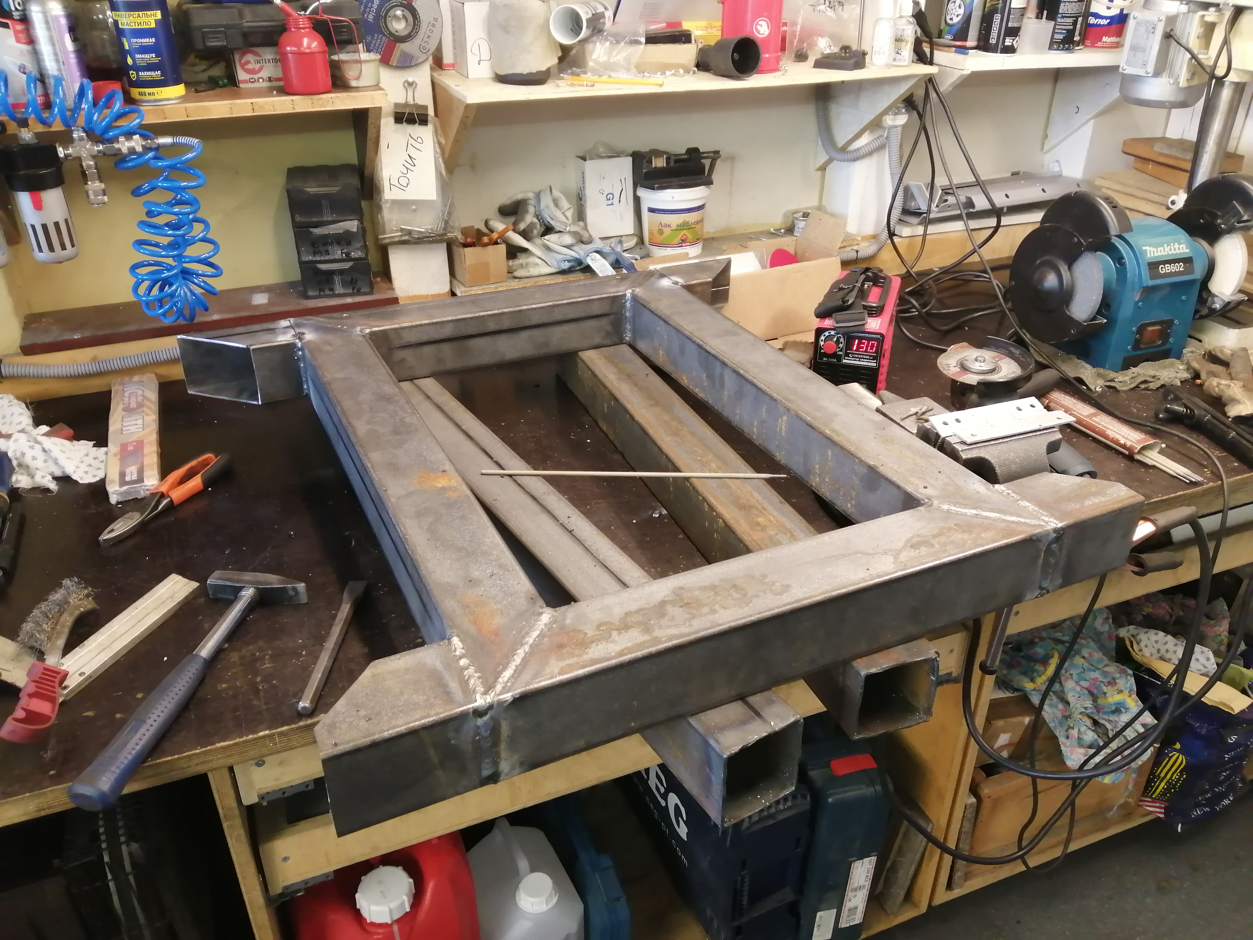 Начата сварка станины, будет выполнена из металла ст3 профиль квадрат 100х3мм, ориентировочный вес основы 70кг. Также предусмотрена возможность заполнить ее песком, это еще +50кг к весу.