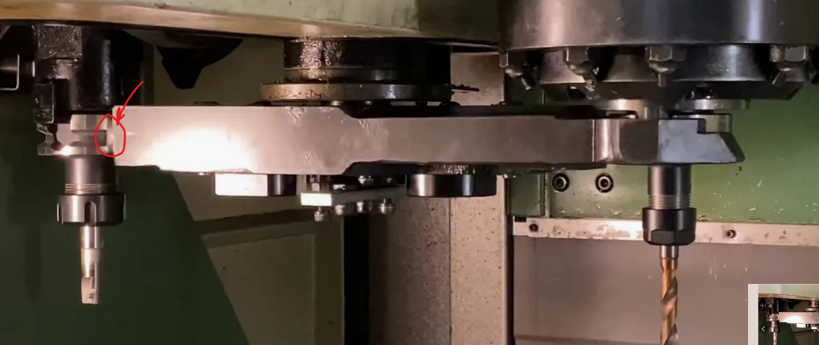 На замедленном повторе видно, как шпиндель немного поворачивается, когда лапа хватает инструмент.