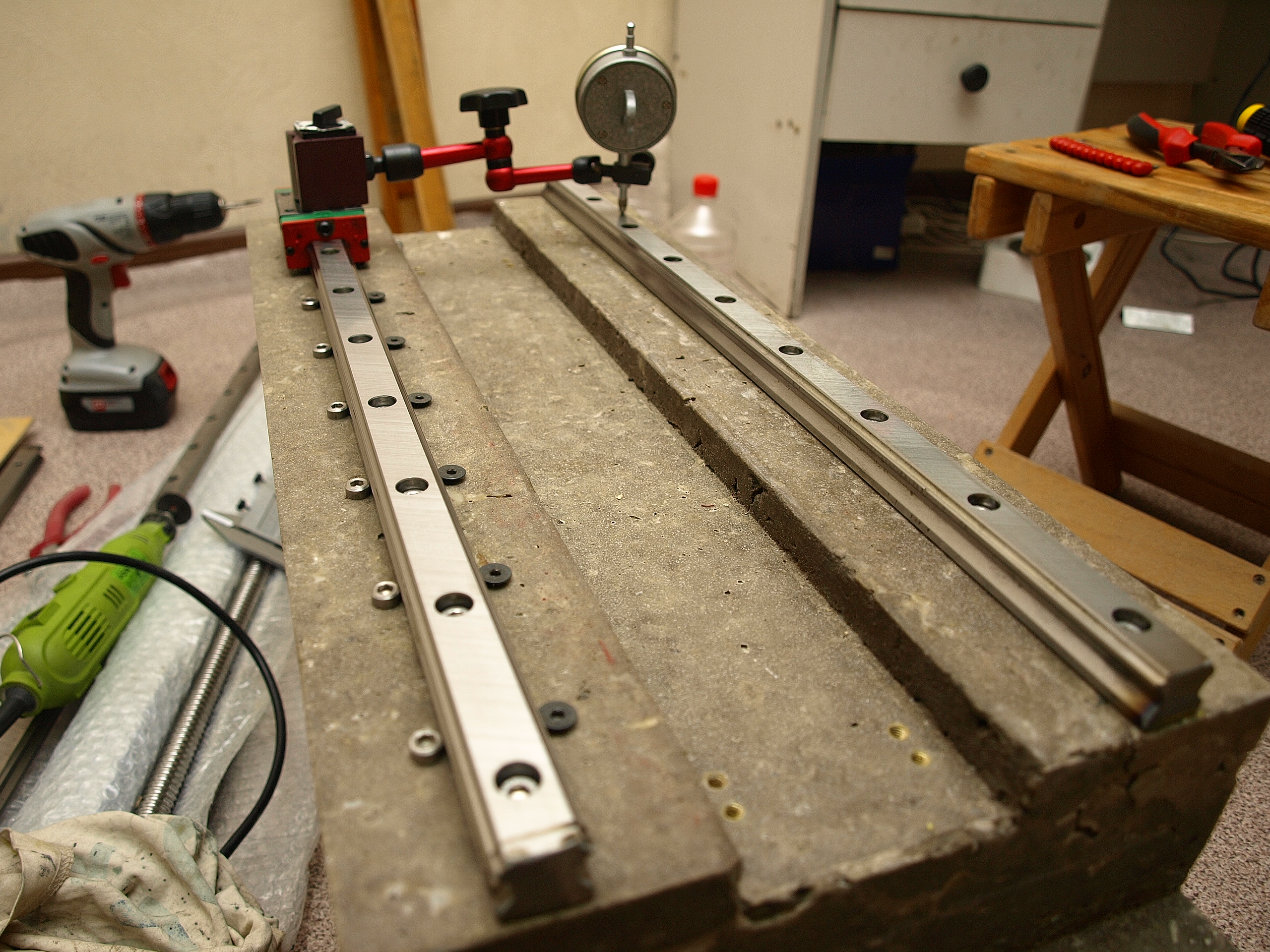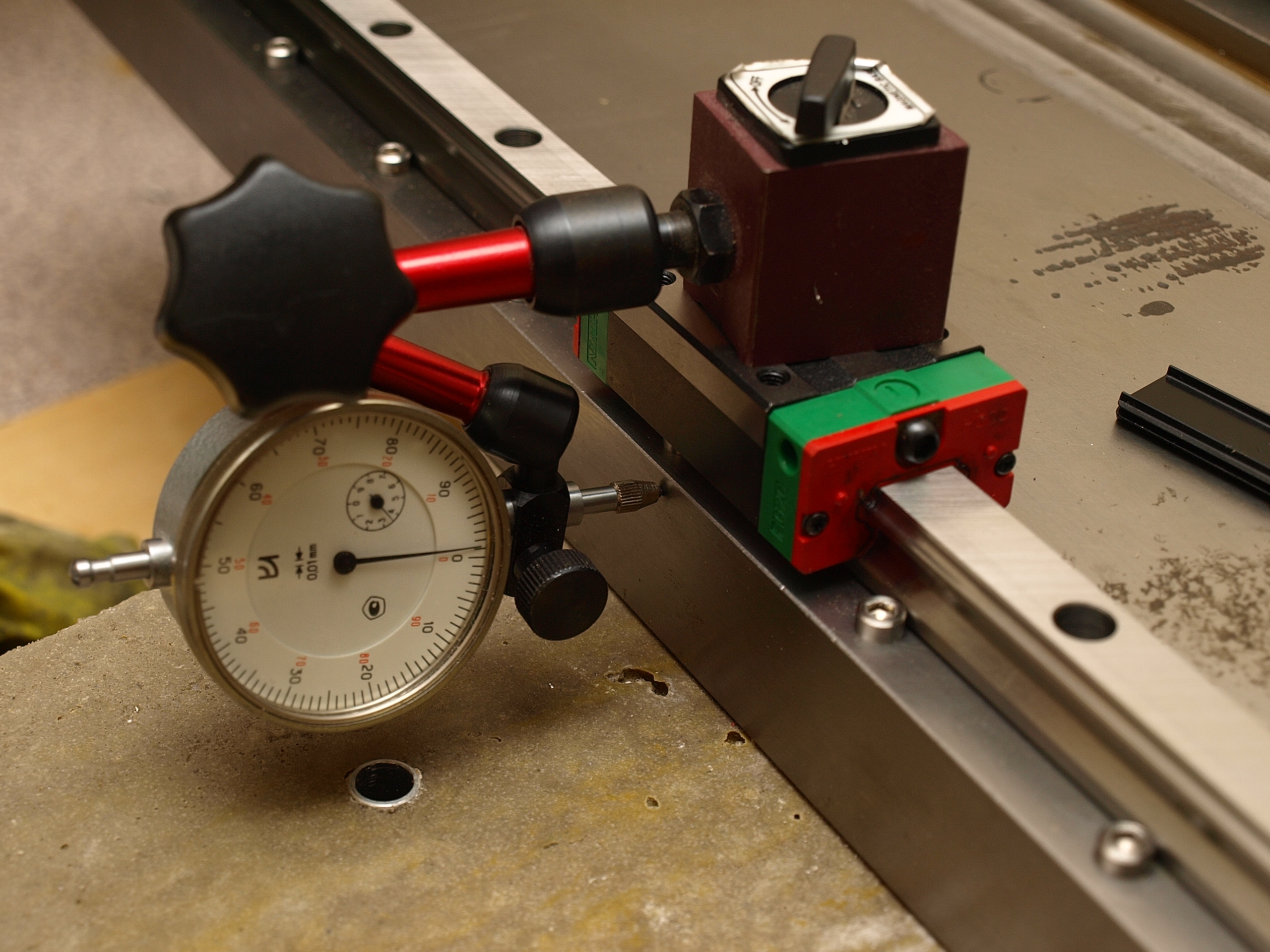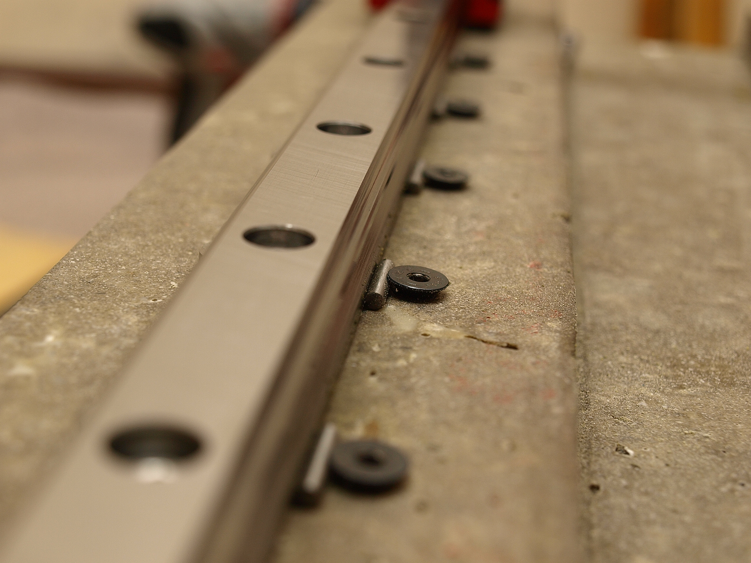 Второй рельс не имеет прижимов. Под него шлифована база по линейке, а в продольном направлении дотягивал руками и затягивал.