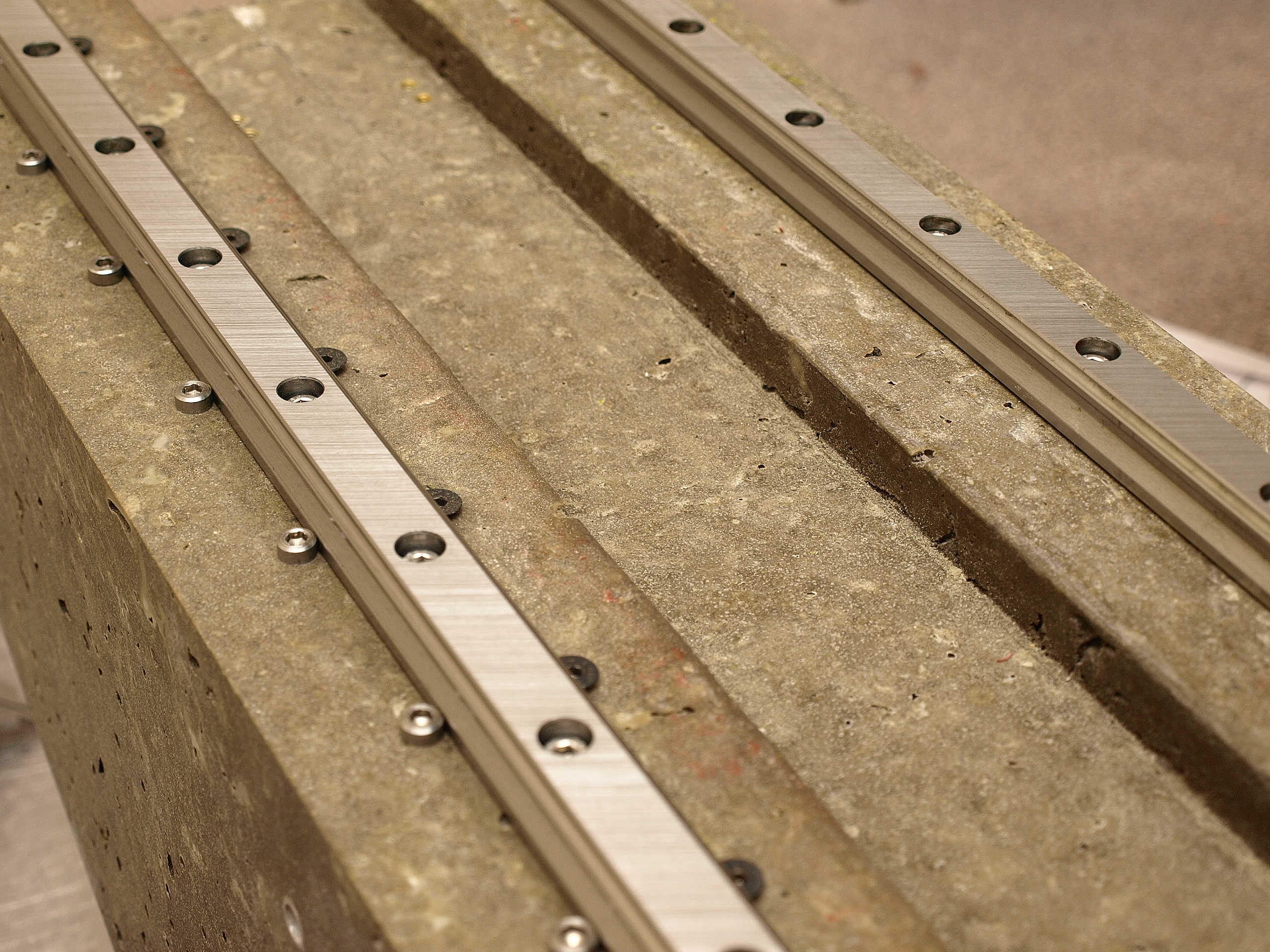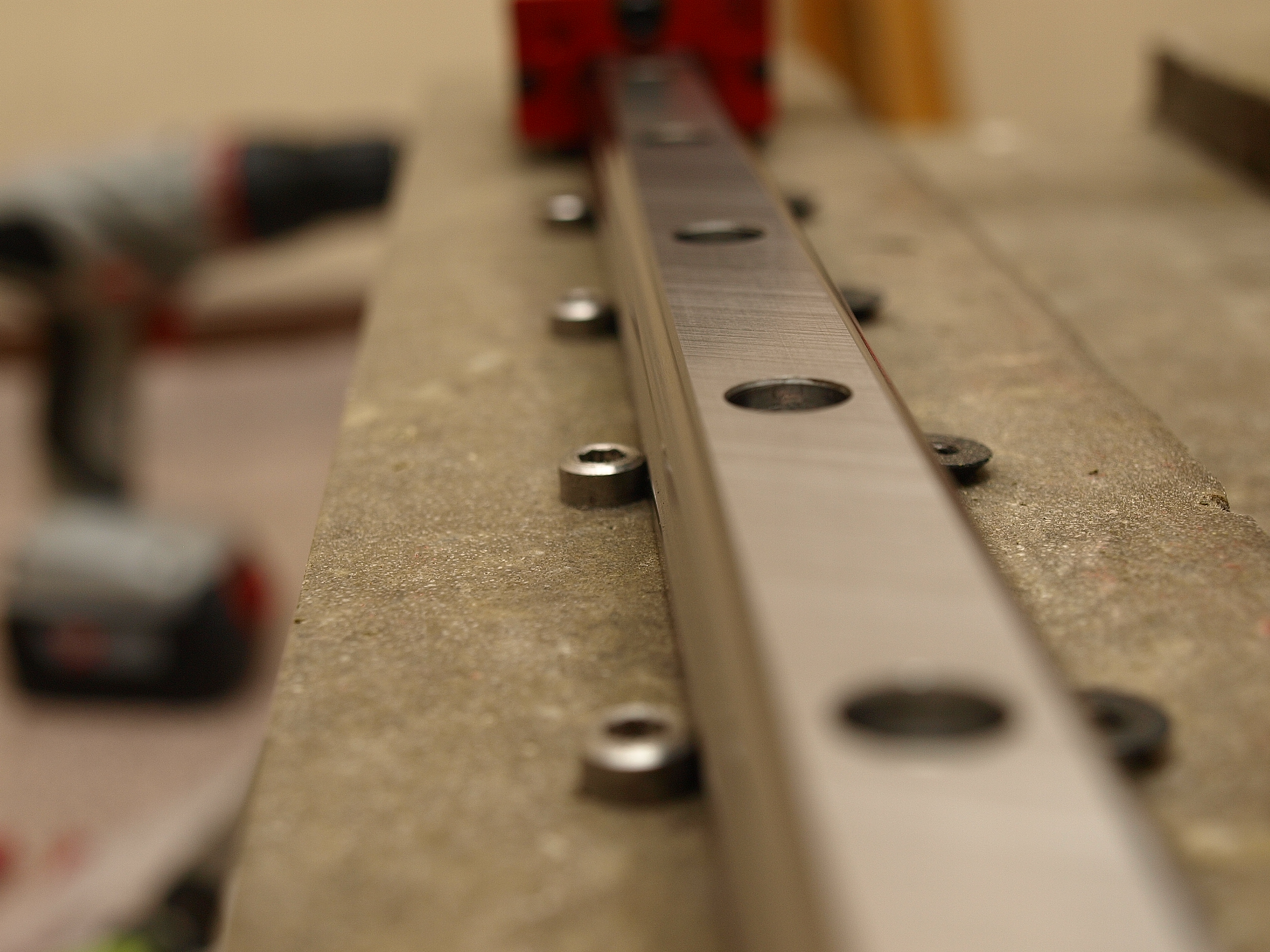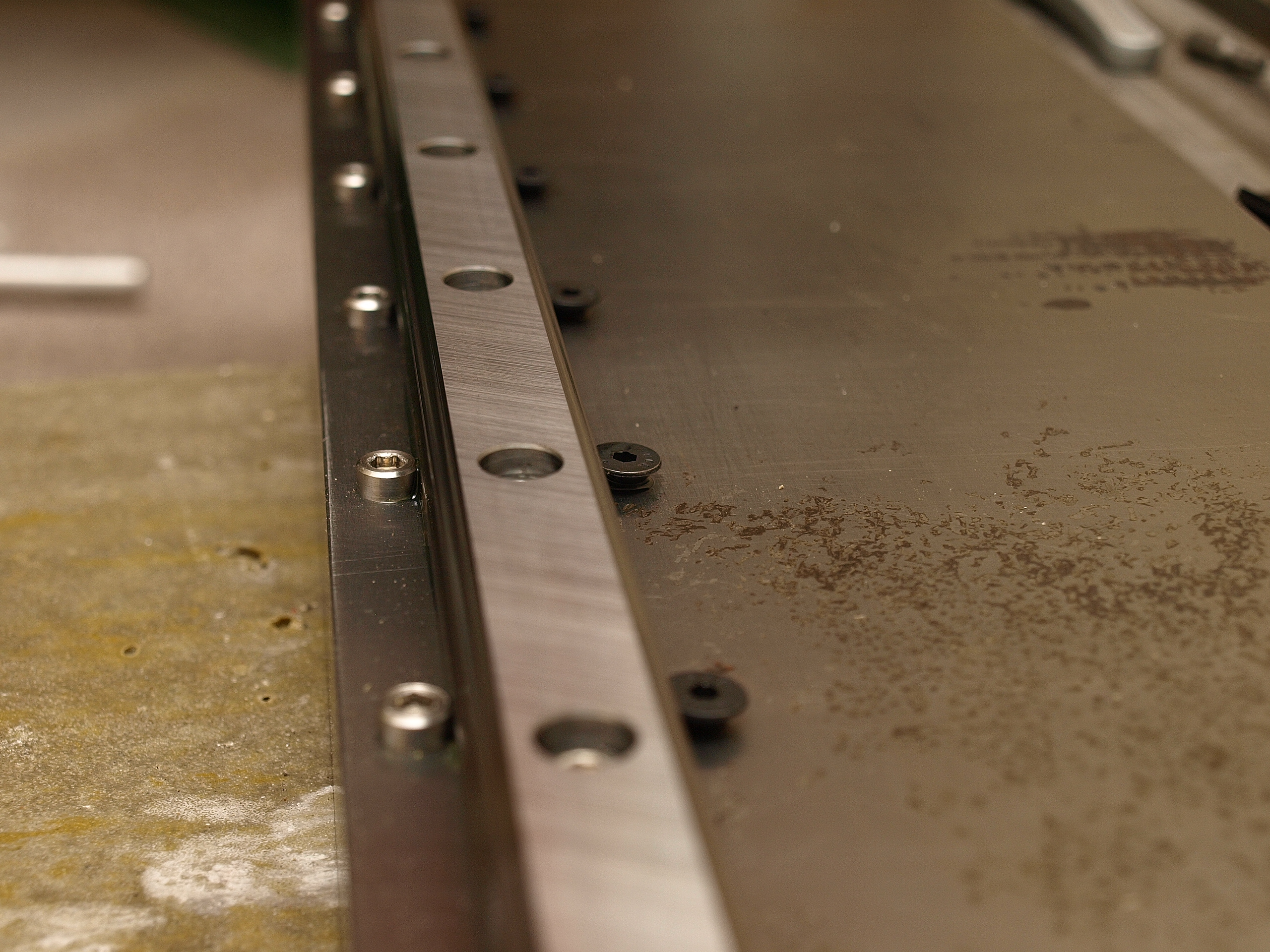 Второй рельс не имеет прижимов. Под него шлифована база по линейке, а в продольном направлении дотягивал руками и затягивал.