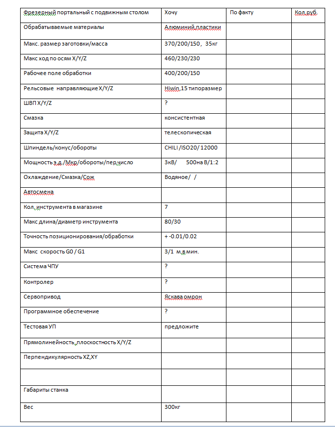 Андрей я буду еще все перестраивать(вечером постараюсь выложить портал ,что -то дохлым выглядит) По шпинделю - будет самодельным с приводом от мелкого бесколекторника (2-3 кВт) .Максим поле будет таким (т.е. механический ход осей) по конструированию не спросю -это нормально .,по защите будет как ты продвигаеш)) ,по зет только не получится. Вся эта халабуда (чугун -мугун,сервы -мервы и прочая прелесть )мне нужны чтоб станок был точным и хотя бы в обьеме 100мм держал сотку. Проект в начальной стадии - все замечания принимаются и это норма.!!!