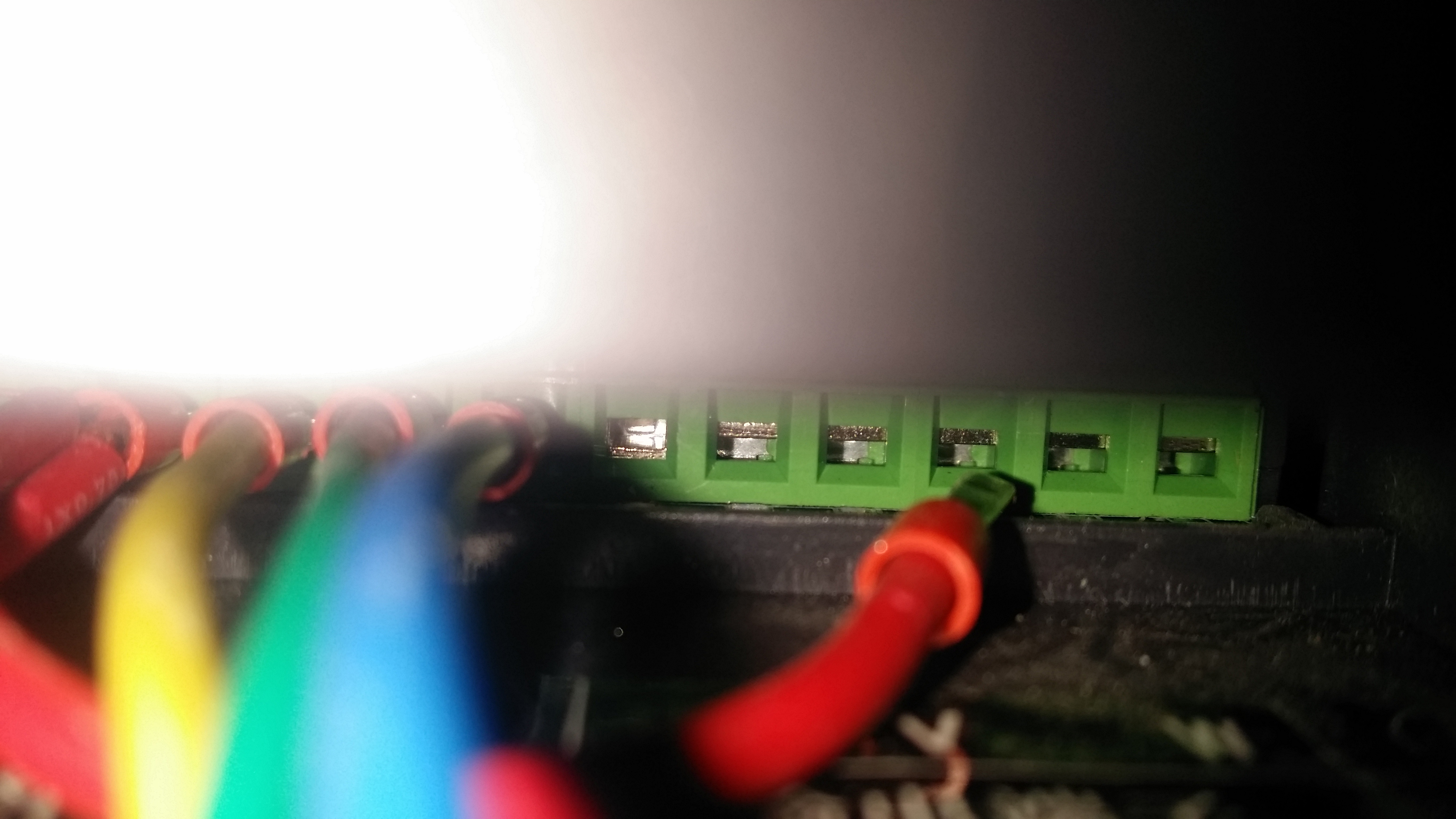 kindred, выключаете станок ждёте малеха и пробуете засунуть красный провода в клемники от синего провода в правые. При этом клемники не нужно выкручивать или вкручивать. Есть така возможность что где он должен быть он влезет так как клемники не закручены. Но это так подсказка.