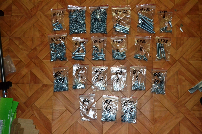 Сегодня купил практически весь крепеж. Нескольких позиций не было. Завтра в другое место побреду. Начал раскрой алюминиевых плит. Забрал промежуточные балки и боковые стойки с обработки с завода. Пока ищу где возможно обработать балки 2600мм.