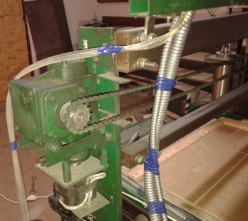 Логически, перескок цепи на зуб не даст смещения на 50 мм, электронное управление одним щелчком, совсем не вариант... учитывая, что движки с редуктором. Смотри именно их и в первую очередь плавность хода осей.