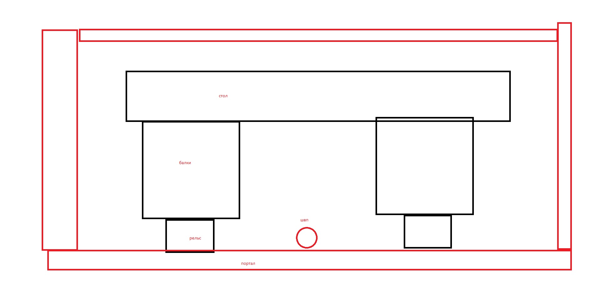 Я предлагал закрепить рельсы снизу под столом (вверх ногами), чтобы портал висел на них.