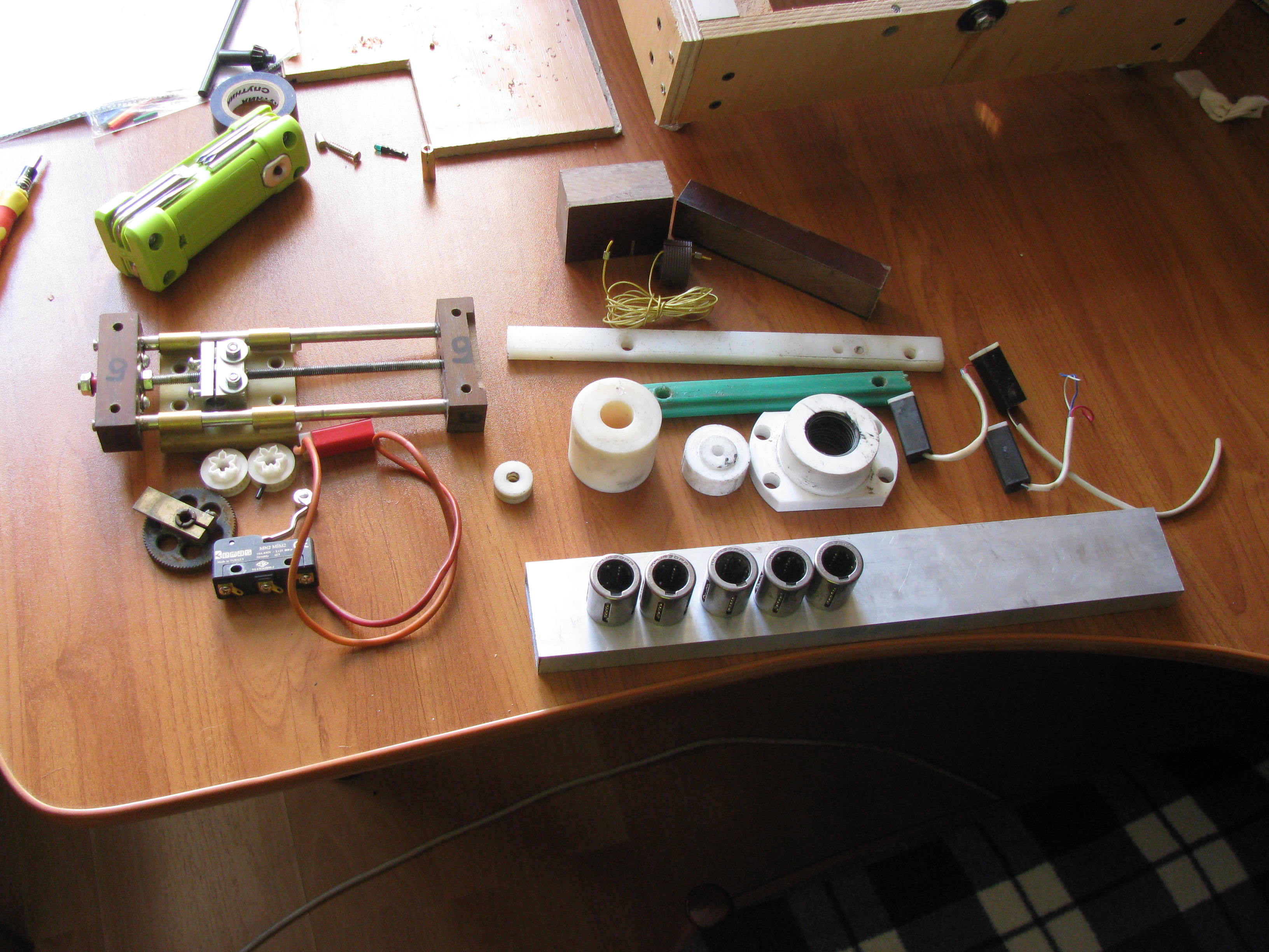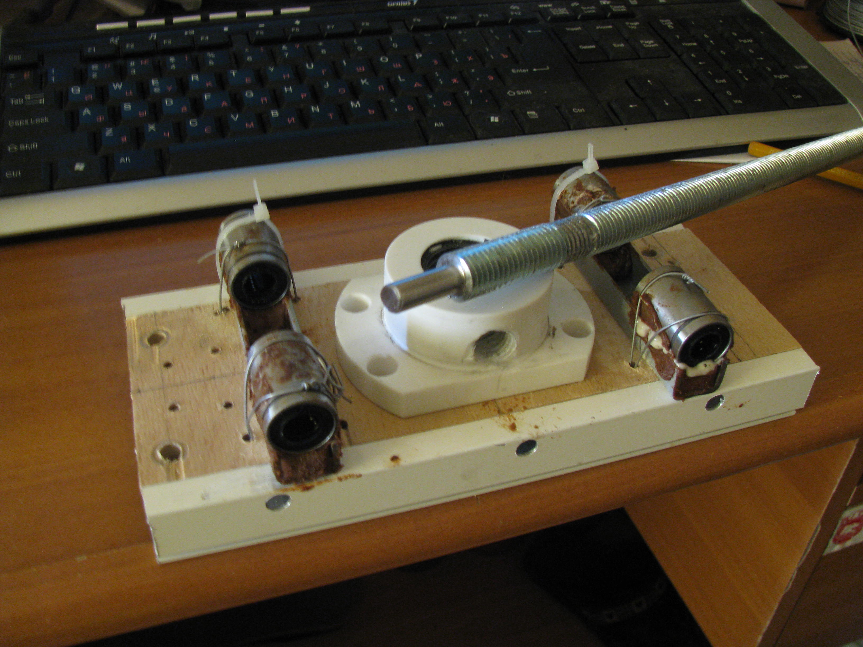 В посылке лежало как раз то, о чем я думал всю эту неделю - ось Z, уже готовая, с выборкой люфтаnERV писал(а):Набрал кучку обрезков антифрикционного пластика, еще кое какие железячки, линейные подшипники. Разберешься на месте.