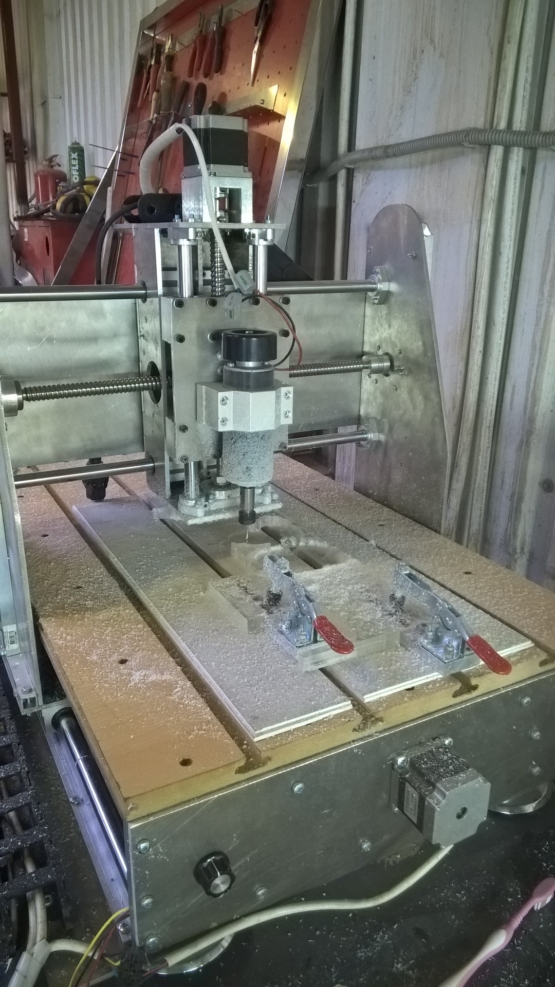 Что касается этого шпинделя, пришел со всеми причендалами и цанга ER11, в комплекте на 3,175, очень тихий. На последней фотке виден переменный резистор (слева от ШД X) им и регулируются обороты, блок питание на него 100V. Имеется перемычка на блоке питания для автоматического включения через MACH3. Акрил 15 мм порезал им на ура, на днях попробуй поиздеваться с магнием и дюралькой