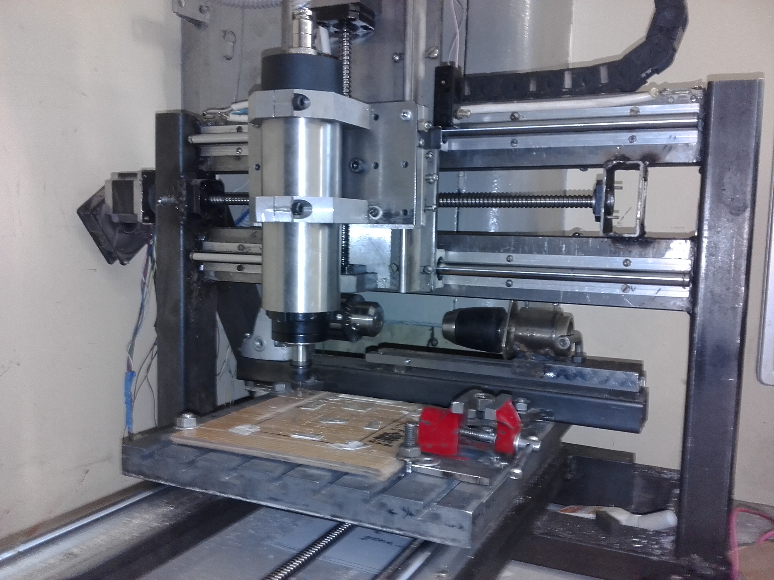 Вот мой станочек... Первый пуск(с новым шпинделем ) .Но ещё не доделал..."Фрезернул" накладку на стол ,- фреза 3мм (квадрат 250х250мм) текстолит