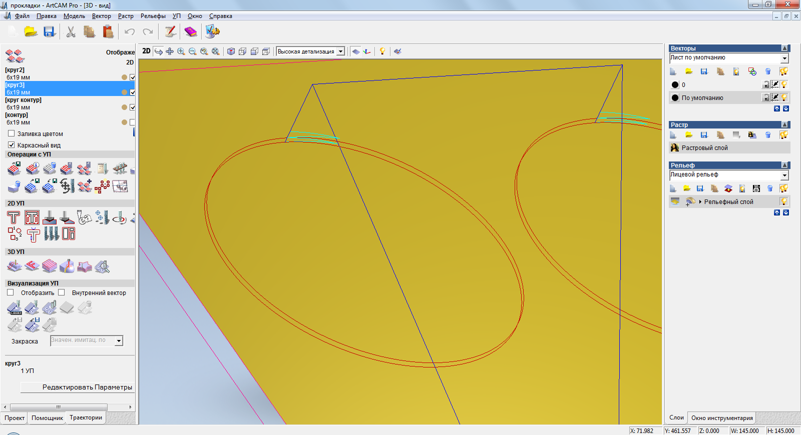 На видео видно что при резке по кругу станок запинается на одной и той же точке а потом движется дальше.... :roll: Такое происходит не всегда, бывает копируешь вектора -одну окружность он режет хорошо,на другой такая ерунда..... бывает два прохода по окружности вырезает хорошо а на третьем запинается.... от материала не зависит- такое случалось и на мдф и на капролоне и на пластике... От оборотов и скорости реза тоже не зависит- пробовала менять и так и эдак и направление реза.... Уп составлена правильно (вектор -элемент "окружность" с автокада перенесенный в арткам), то есть "мусора" никакого на этой точке быть не может.... Что это? Уже сломала голову :cry: Где что посмотреть и исправить? Честно говоря не припомню раньше такого, хотя не припомню что б и окружности резала :thinking:
