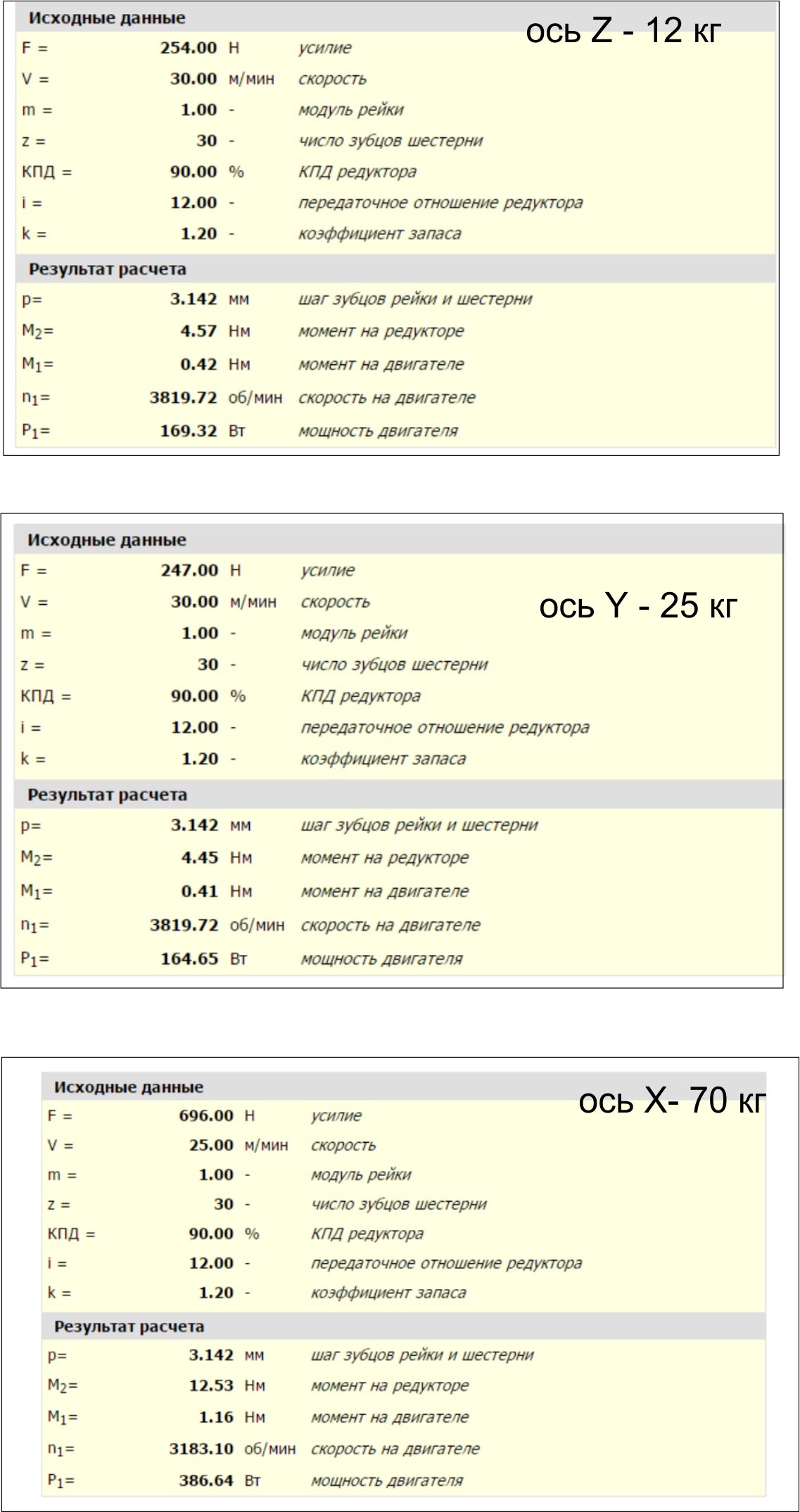 Привод зубчатый по Z? - надо будет чем-то мотору помогать держать. На других необязательно - не те массы.