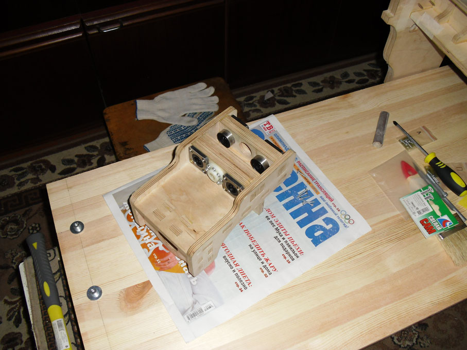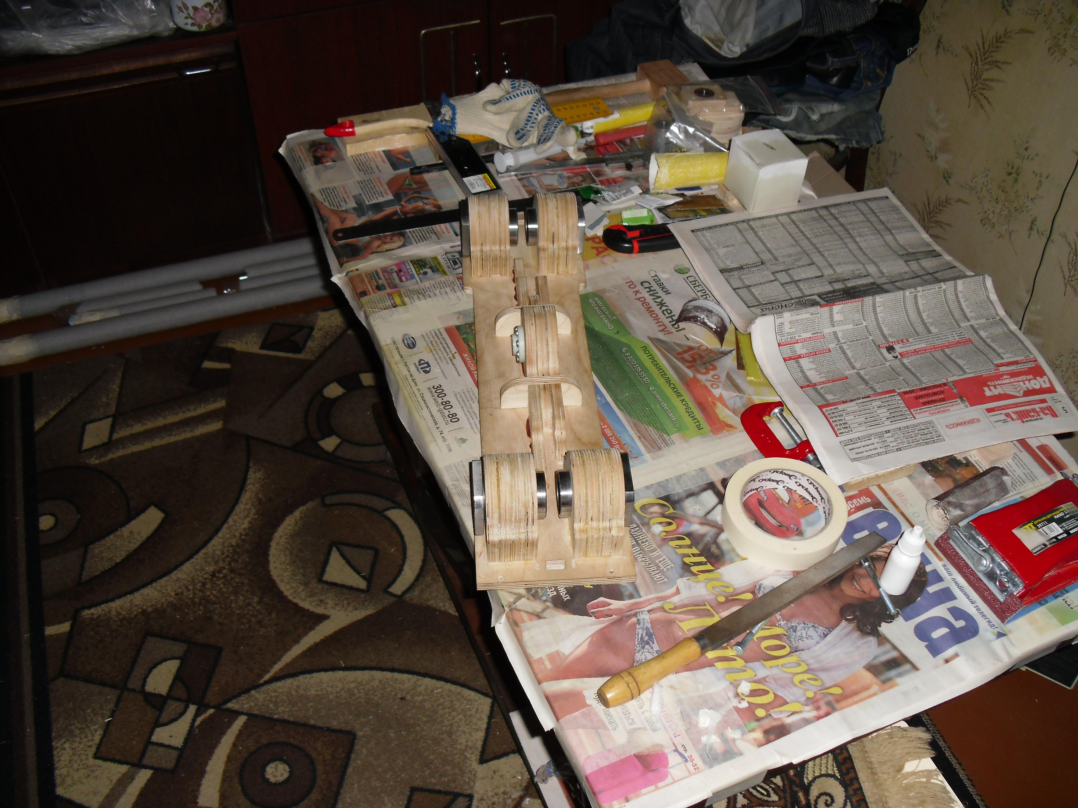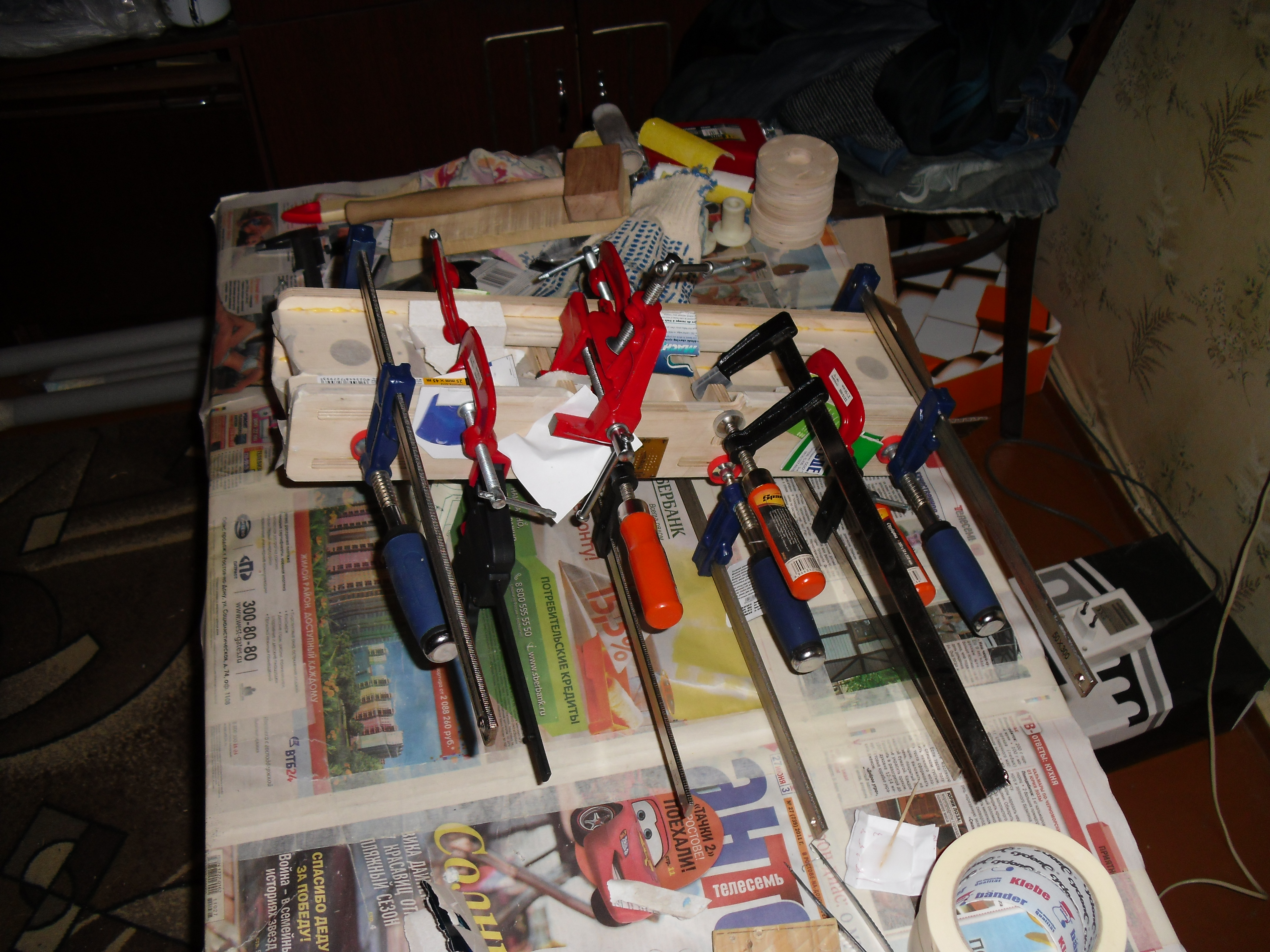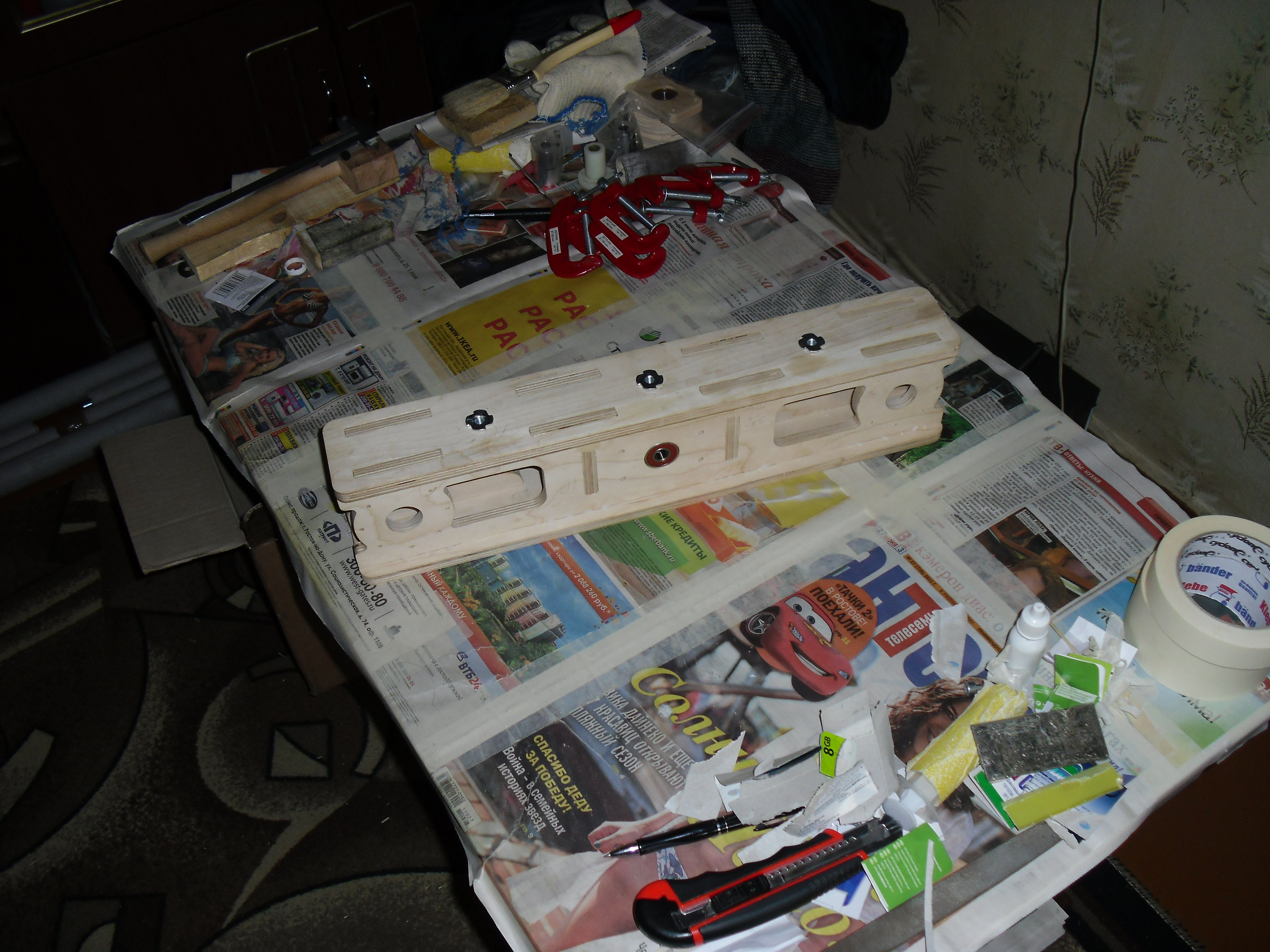 После чего разобрал, промазал клеем и склеил. В работу пошло все для стягивания и струбцины и тиски небольшие :D