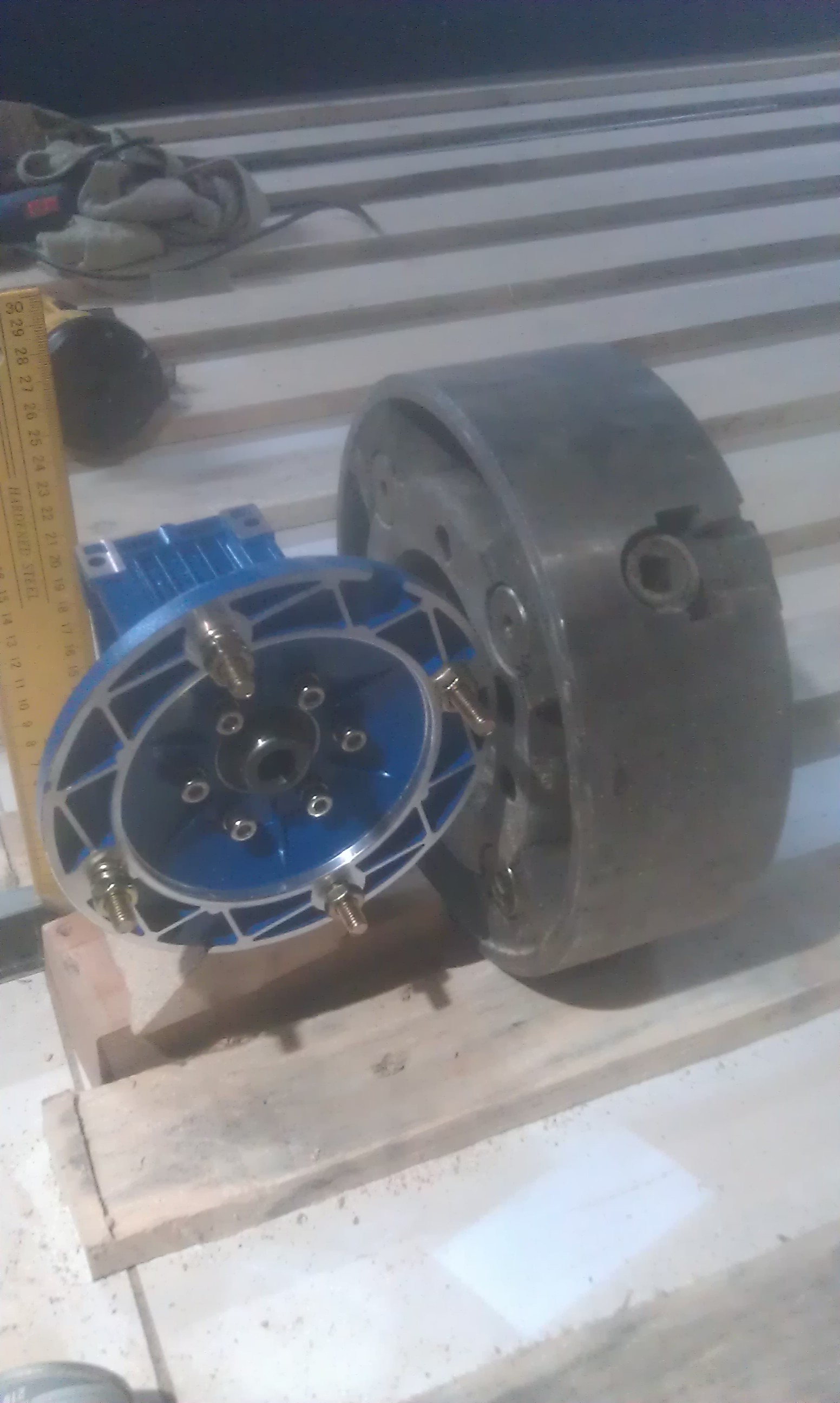 с одной стороны будет стоять токарный патрон 250мм в диаметре (вес 22 кг) с другой шаговый двигатель, на двигателе вал 14мм со шпонкой, типоразмер двигателя Nema 34.