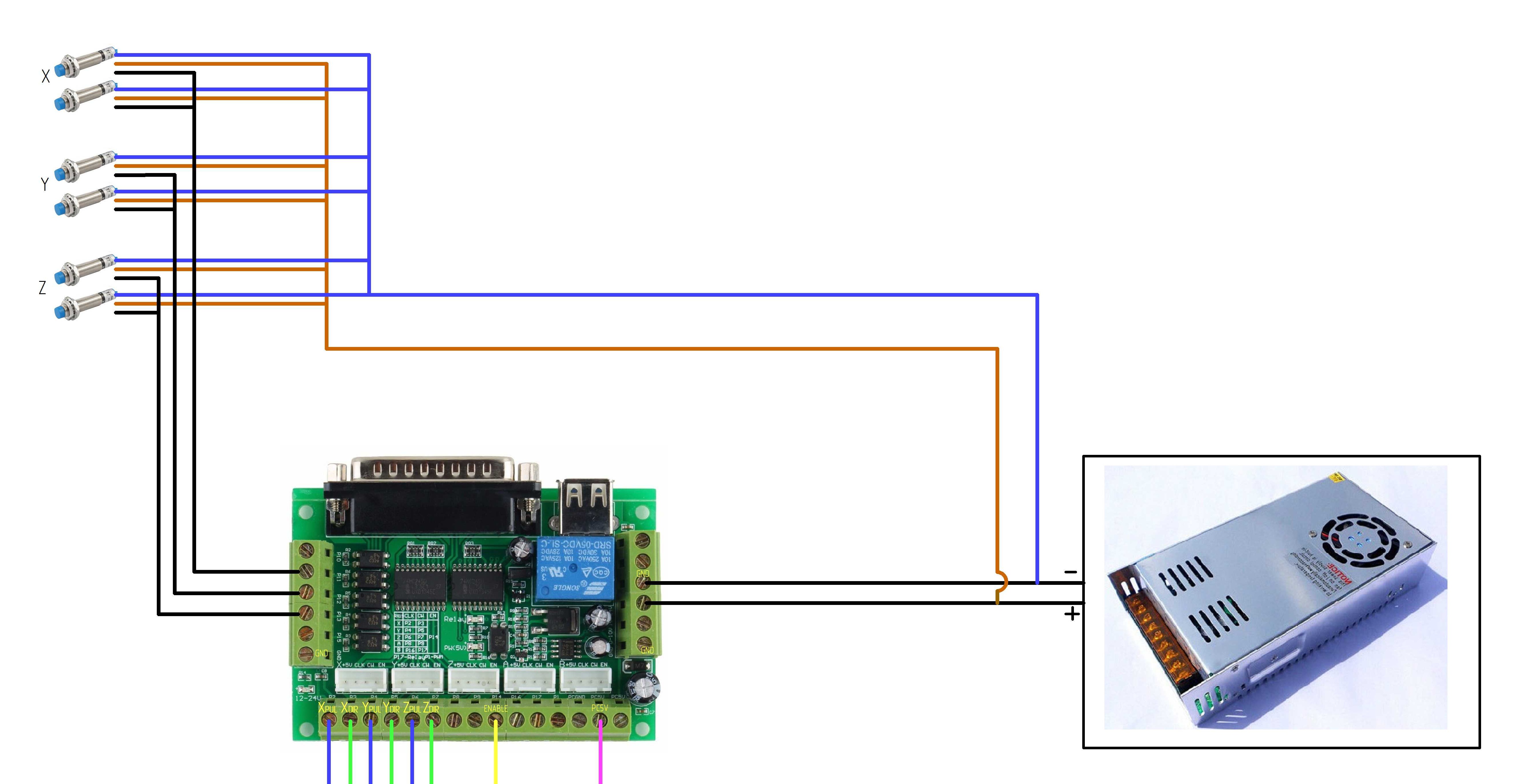 Сейчас передала схему подключения как на картинке, вообще перестали срабатывать концевики ни на одной оси.