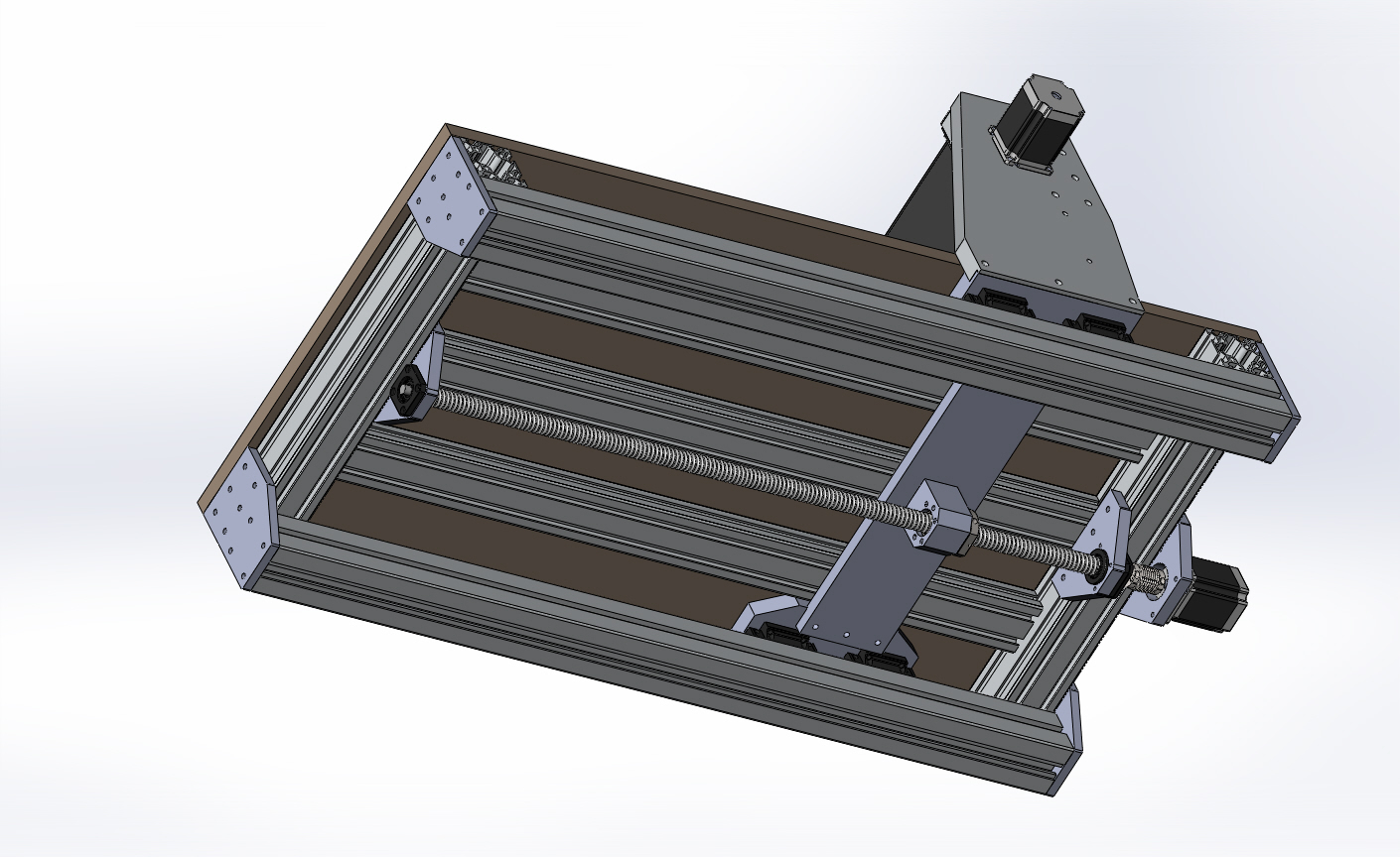 Станина из 60-го усиленного профиля на 20-ых рельсах винт 20-ый. Всё остальное на 15-ых рельсах и 16-ых винтах. Мне нужен ход по длинной оси 650 мм, по этому и 20-ые поставил.