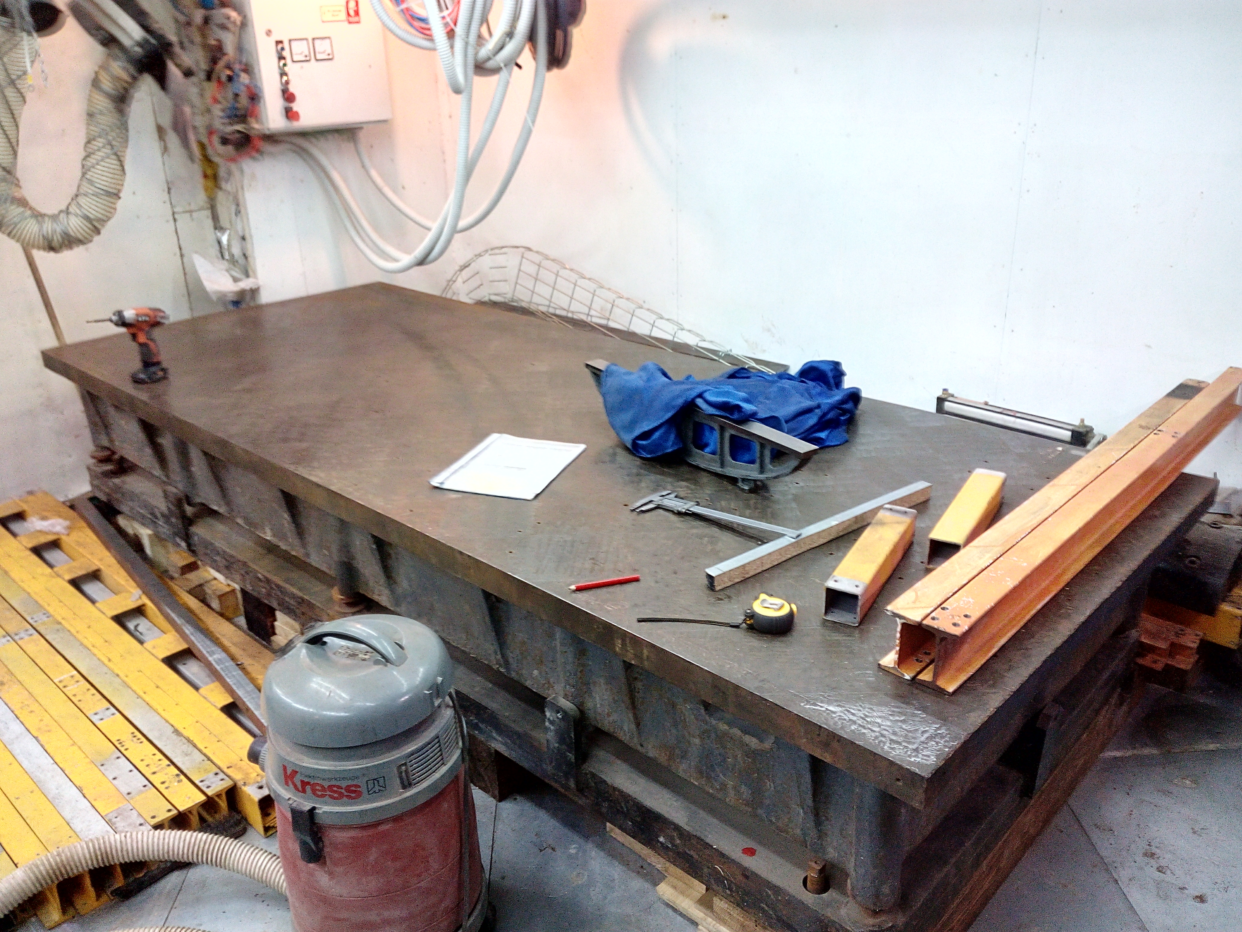 Изначально рассматривался вариант сборки новой балки портала и выправлением плоскостей под рельсы, но совершенно случайно наткнулся на объявление о продаже небольшой поверочной плиты. Небольшой потому как ее размер был крайне мал для использования ее в качестве основания станка желаемого размера. Поразмыслив немного сделал для себя выводы которые говорили о том что большой станок мне не нужен, т.к. он займет всю площадь и места под материал и готовые изделия не останется. В итоге было пряно компромиссное решение уложиться в отведенные 6 кв.м. площади для установки станка с возможностью в будущем удлинить одну из осей.