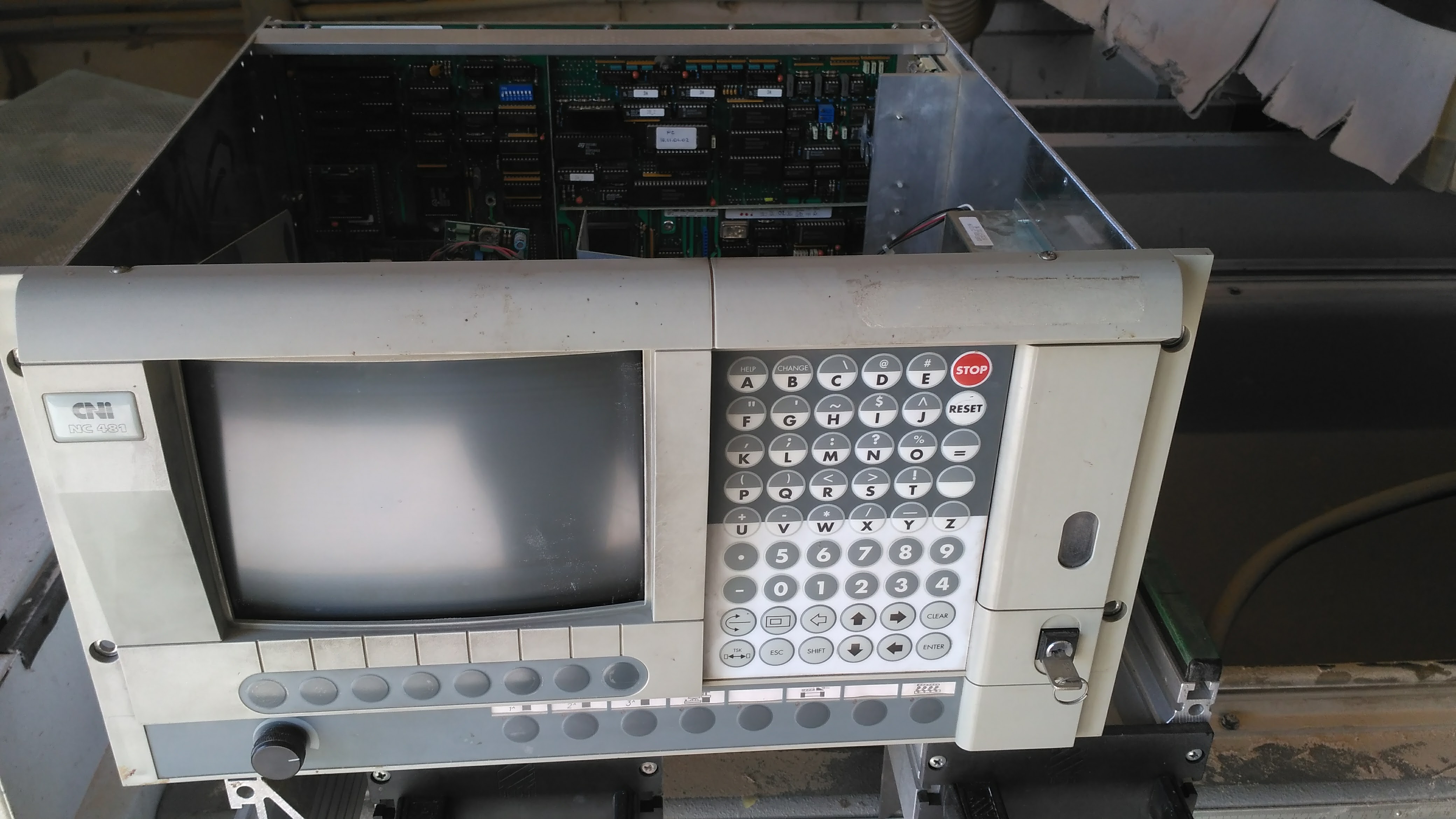 Вобщем глянул ветку на сайте что скидывал выше. Вопрос такоей есть. Решения нет( там послали чела на cnczone) с данной стойкой незнаком. Но с роверами работал. Те что на экспишке грузят в плату pci конфиг. От туда два канала кан на сервопаки и ввод вывод. И еще один 485 на шпиндель. Судя по возрасту станка наворртов там немного . Если присадочный узел есть то там много пневмо цилиндров. Ппару на автосмену. Пару на защитныйе кожуха стружкоудаления. На вакуум два клапана если поддерживает двухзонную работу. Входы аварийные в основном типа инструмент в шпинделе или нет вакуума. Коврик или оптика на оператора в опасной зоне и т.п. остальные навороты завороты софтовые. Типа убрал руками из шпинделя инструмент _ незапустишь уп пока не укажешь это Софту.