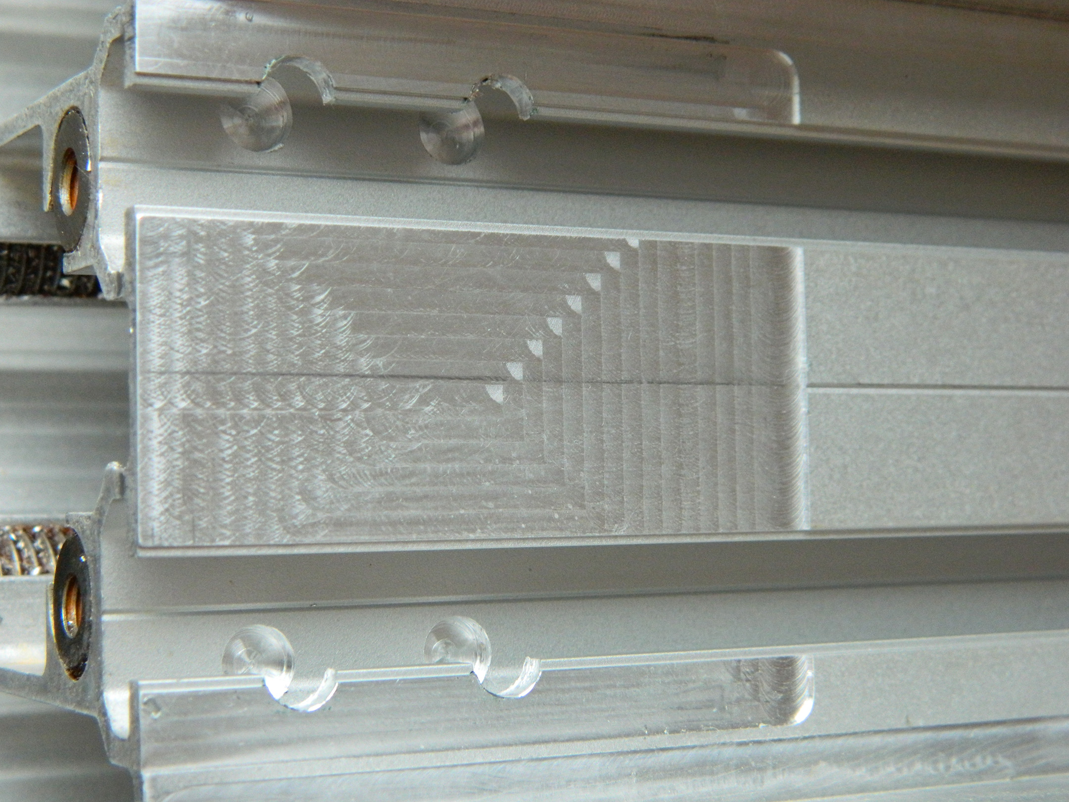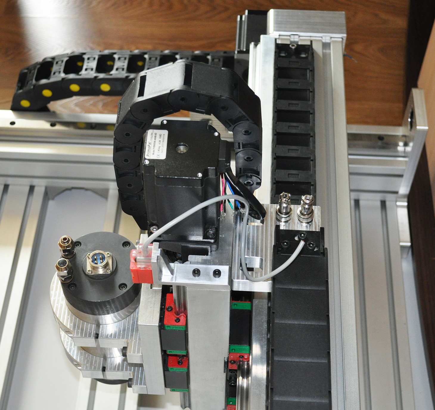 Да. Крепление мотора и поддерживающая опора прямо к профилю крепятся. Профиль с прикрученными проставками фрезеровался за одну установку и под рельсы и площадки под крепление мотора и опоры.