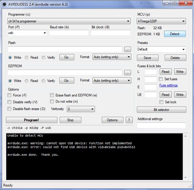 При нажатии "detect" avrdudess ругается, что вроде как не может обнаружить контроллер. :thinking: