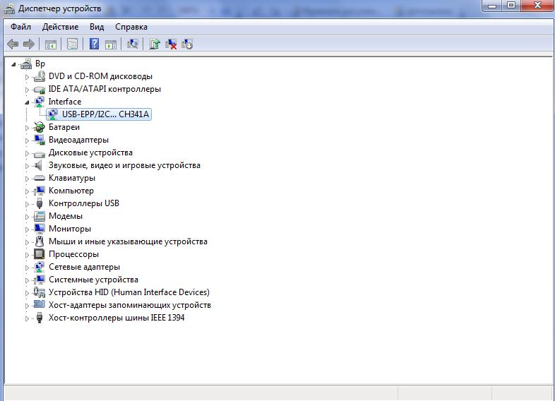 С диспетчером такая картина. Когда подключаю плату контроллера напрямую через USB он определяет СОМ-порт(4), а когда через СН341 какой-то интерфейс.