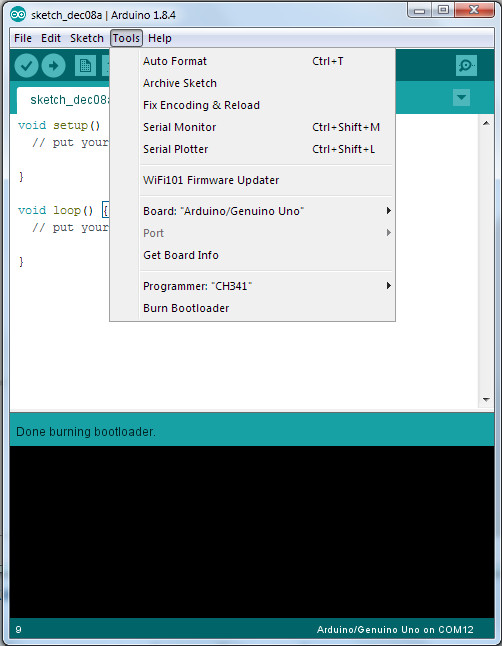 Поэтому я в Аvrdudess только стёр всё, что в флеше было (не знаю- нужно это было для дальнейшей прошивки или нет, но таким образом я удостоверился, что в Атмегу можно писать) через сн341 и программу Аrduino IDE залил bootloader, и потом уже подключив плату контроллера напрямую к usb, через Xloader залил прошивку.