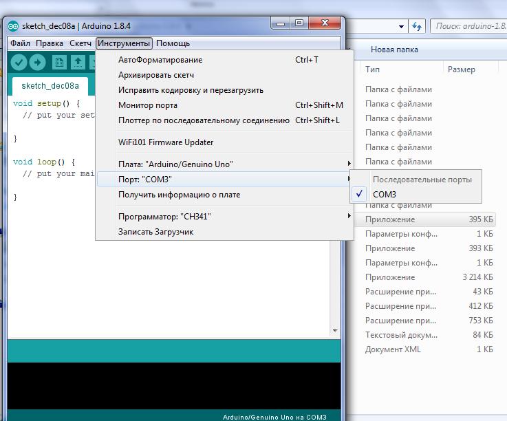 Если такого программатора в списке нет, надо добавить вручную. Деалется это правкой файла programmers.txt который у меня лежит в папке arduino-1.8.4\hardware\arduino\avr и добавлением dll-лки в папку arduino-1.8.4\hardware\tools\avr\bin.