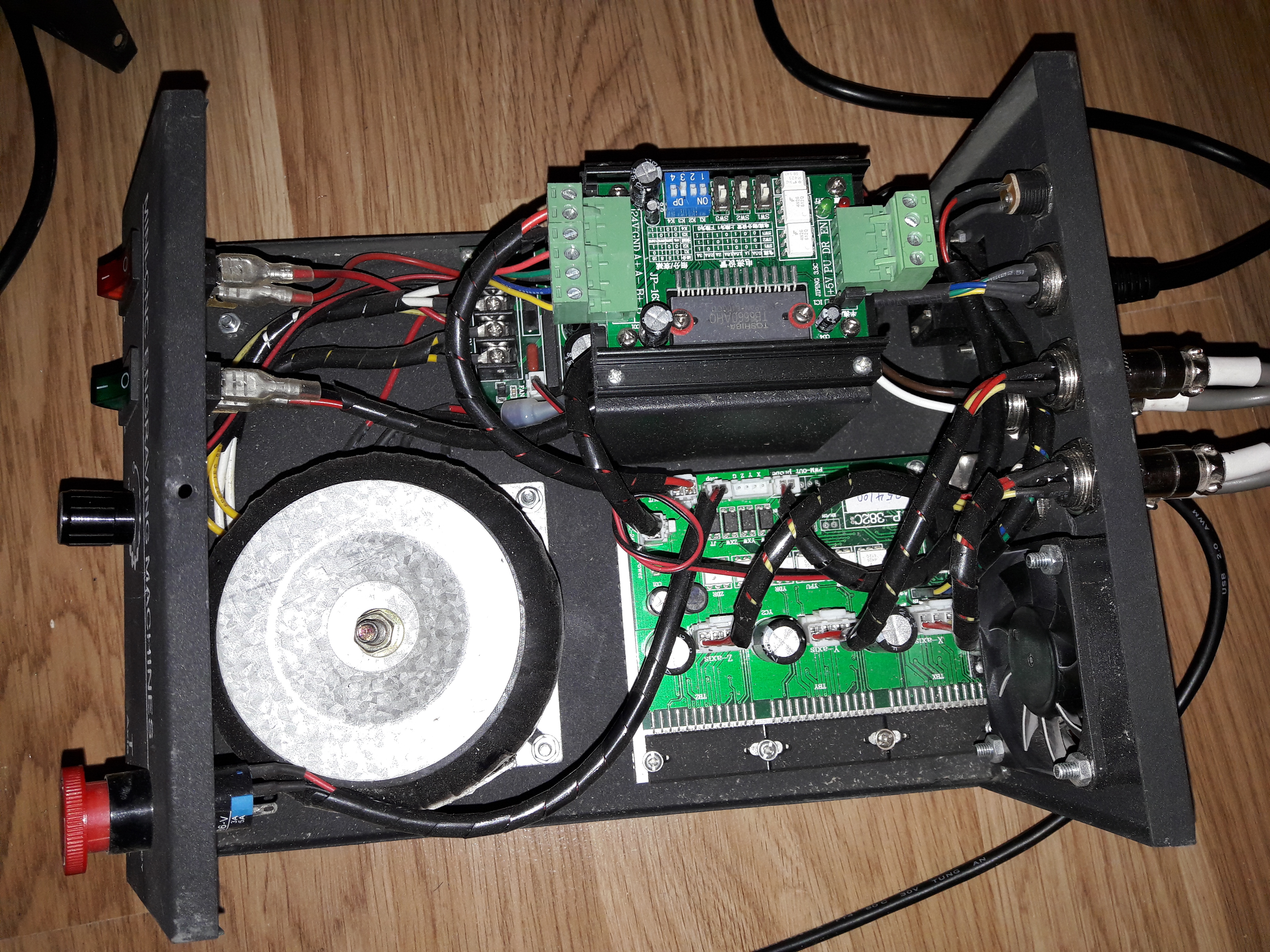 Там еще есть один не подписанный внешний разъем на 4 пина, но он судя по всему для 4 оси, совпадает со штекером от привода 4 оси и провода идут на отдельный 1 осевой контролер.