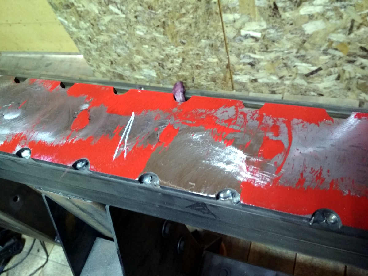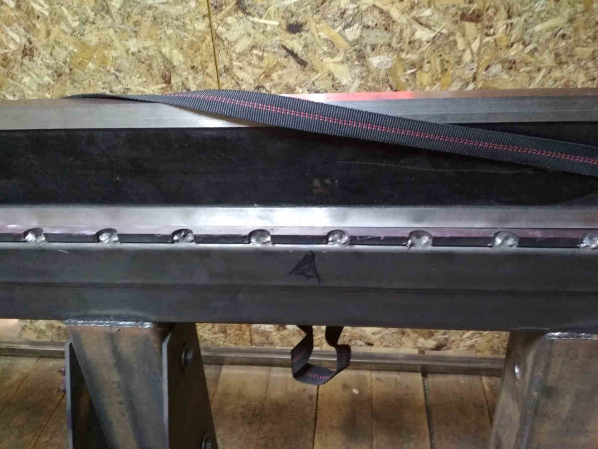 Полоса приварена к раме как по периметру, так и по центру - в ней были нарезаны отверстия 25мм с каким-то шагом. Они были "залиты" сваркой.