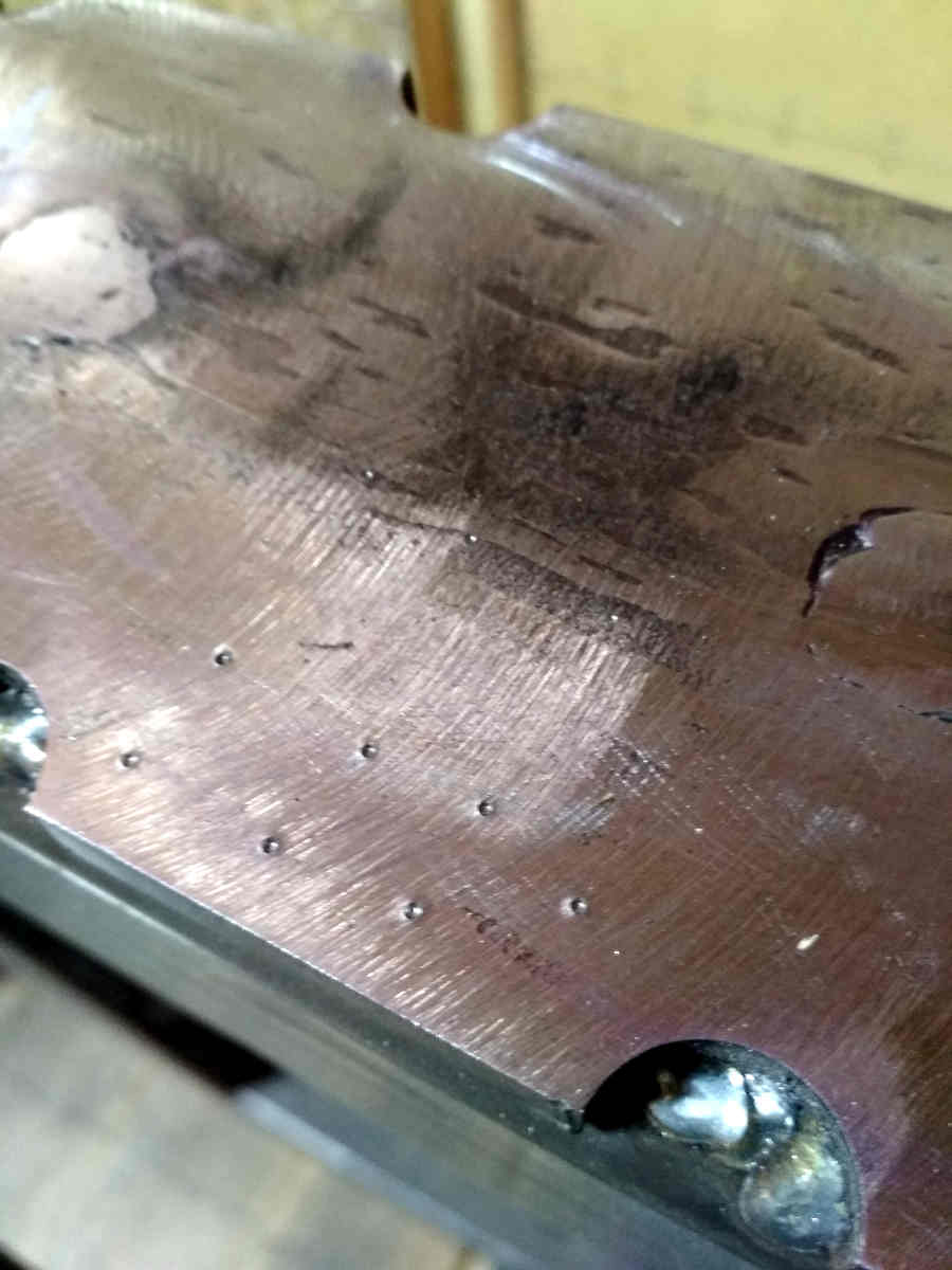 Керним площадку. Опыт показал, что вышеописанный кернер дает ямки глубиной около 0.2-0.25мм После кернения шлифуем фибровым диском (или чем удобно)