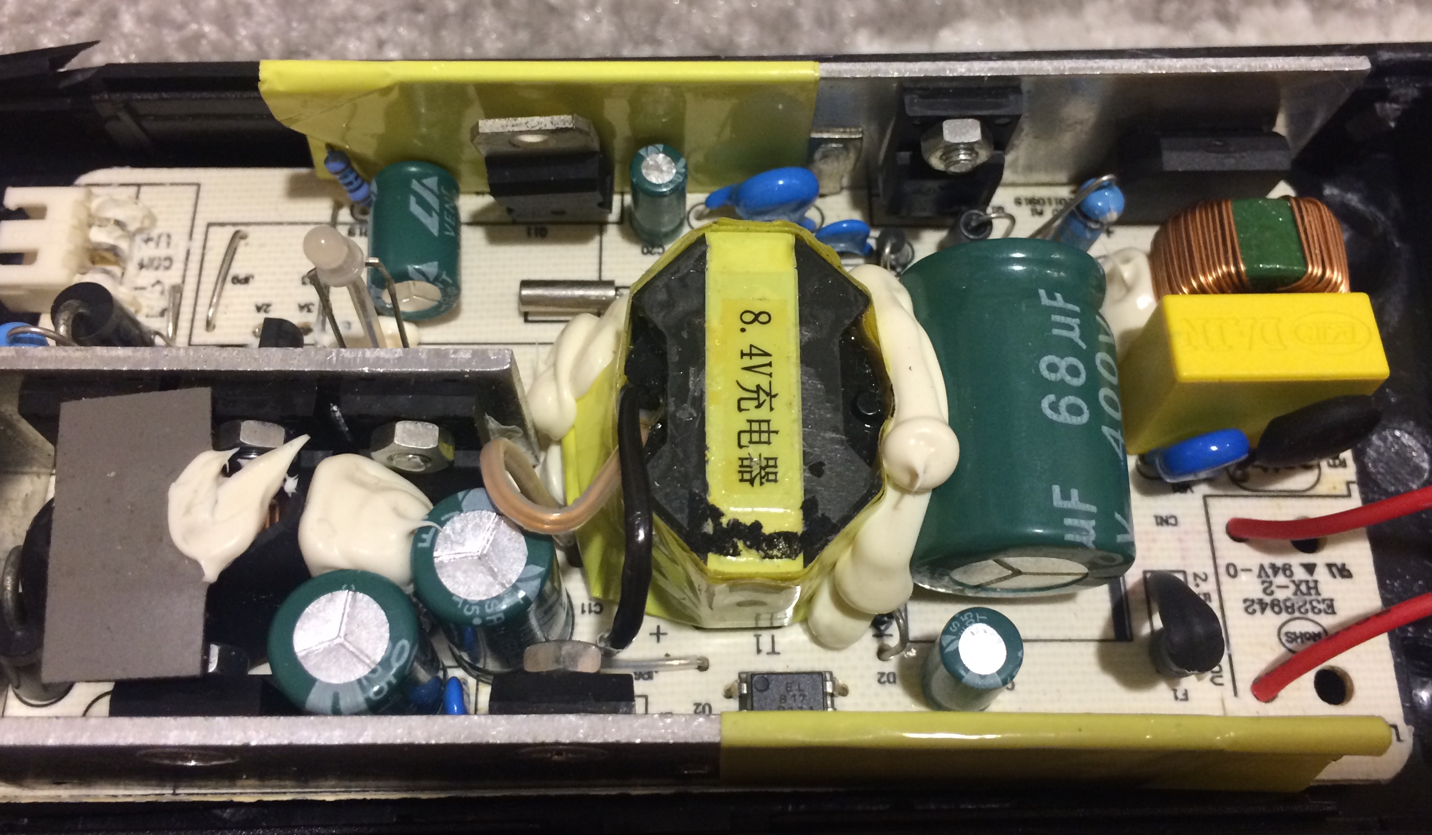 В общем внутри просторного корпуса оказался блок питания ноутбучного формфактора от питания чего-то двухполярного. Соответственно, этот блок питания был переделан под нужды трудящихся. Визуально качество на четыре с минусом.