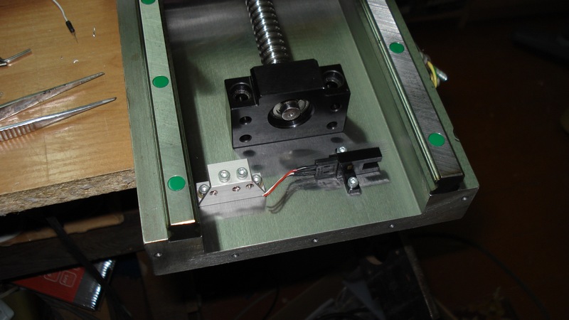 - Во-вторых, без тестирования ставить и подключать платы просто опасно. У меня сначала не работала плата I/O. Связываюсь с разработчиками и находим что не запаян один резистор и вся часть на out не работает. Затем в плате PWM то ли микросхема попалась паленая, то ли непропай, но на одном из выходов постоянно висело -14В. Комп включаю - и ось со всей дури едет пока механически не упрется. Грохот тот еще. Пока этот канал не задействован. На данный момент ребята выслали плату для тестирования по ethernet. По результатам отпишусь. Концевики изначально стояли оптические от Omron, хотелось точности, но в реальности с ними очень много заморочек и заменил на индуктивные с какого-то немецкого станка. Все равно homing делаем по index меткам энкодера. Концевика 3 на 4 мотора. Поиску начал помогает кинематика egantry. Но хочу добавить еще один концевик на свободную сторону оси Х из-за ощутимых ударов по механике во время поиска index меток.