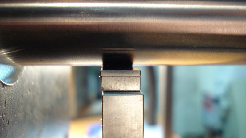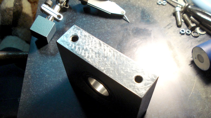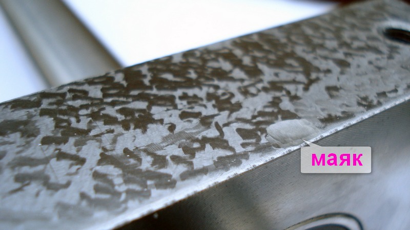 Теперь необходимо чтобы при установке крепления в ногу портала сохранилась параллельность оси вращения гайки оси направляющей в 2х плоскостях. Вверх/вниз, влево/вправо если смотреть вдоль оси вращения. Гайку решил пока снять, а вместо нее в подшипники (внутр. диам. 30мм) вставить скалку, благо такая имелась от цилиндрической направляющей. Процесс подгонки решил начать с шабрения крепления: Затем по креплению начинаю пришабривать плоскость в самой опоре портала. После того как все пришабрено, необходимо измерить плитками КМД непараллельность вала направляющей и скалки: Измерив знаю на сколько надо завалить одну из сторон крепления. На этой стороне делаю ямки/маяки и процесс шабрения пошел снова и снова: Не знаю поверите или нет, но в 2 сотки непараллельности попал.
