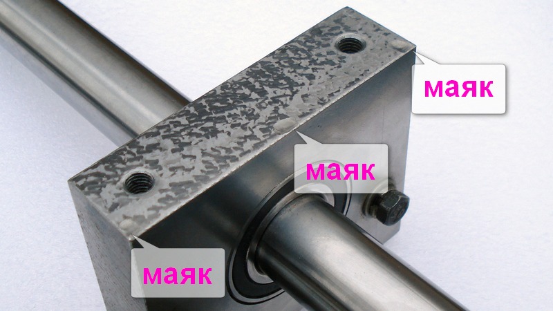 Мы точно знаем что ось вращения гайки параллельна оси вращения подшипников крепления. Но это только начало.