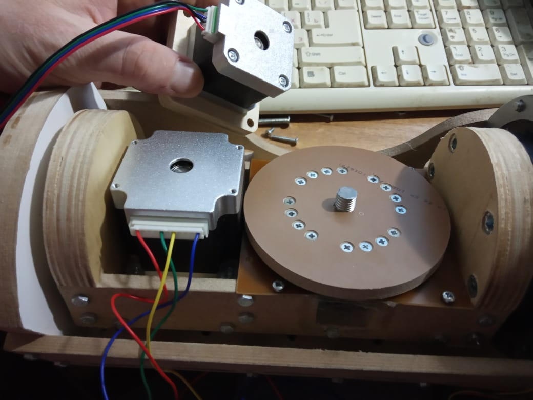 Вчера запустил поворотную ось к станку на мелкой гармошке 17х80 и 80мм патроне. Мотор пока мелкий, какой под рукой был: