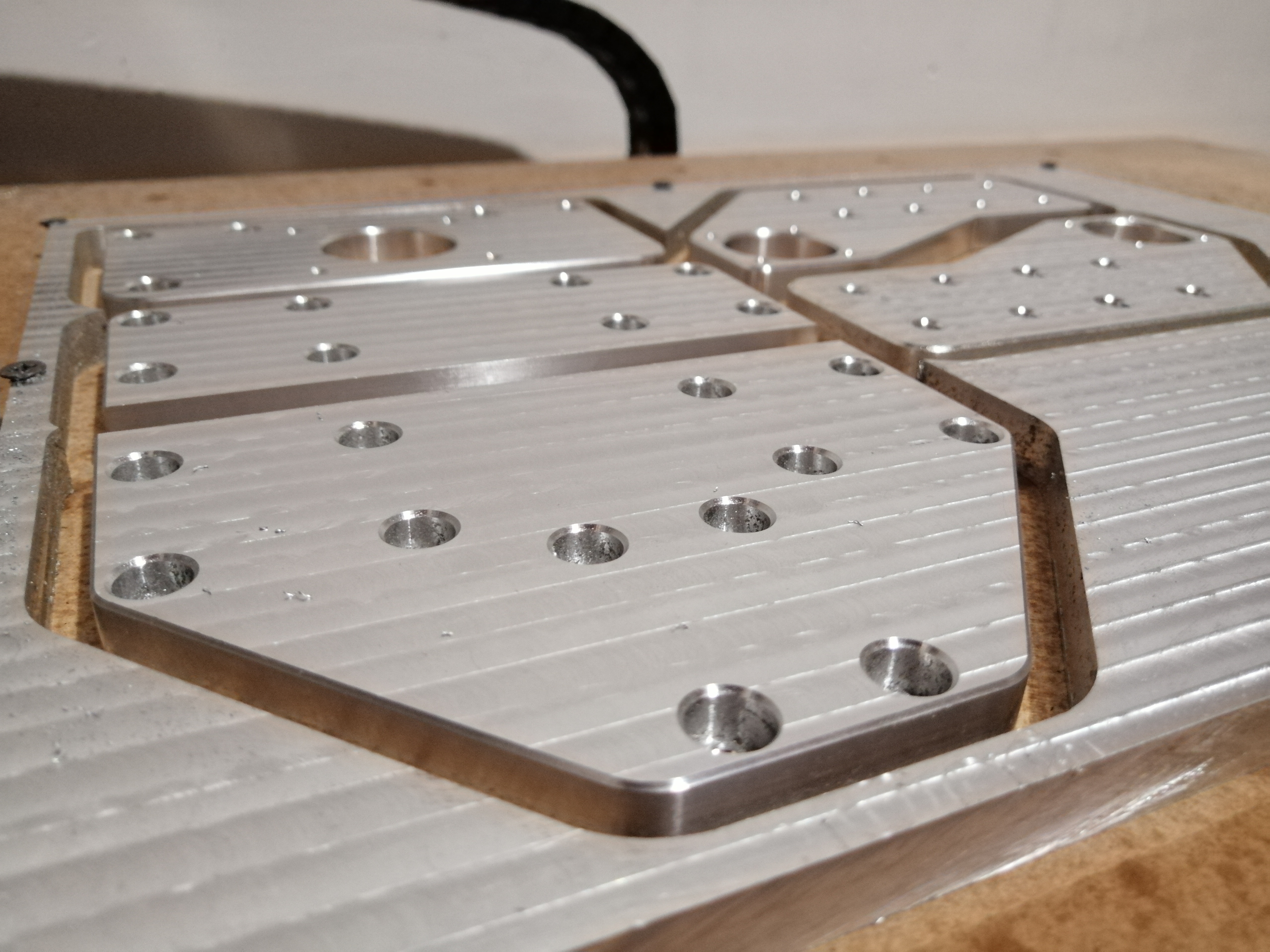 Станок продолжает проходить испытания: детали для "Минимальца" из АМг6 12 мм. Жесткости станка хватило для обработки на более интенсивных режимах, как оказалось ограниченных обрабатываемым материалом- довольно вязким. Правда фреза была уже не много подсевшая, как приедет новая протестирую еще раз максимальные режимы. Вырезка основного контура проводилась двузубой 8 мм фрезой на 6100 об/ мин и подаче 1500. В качестве СОЖ - масло И-20.