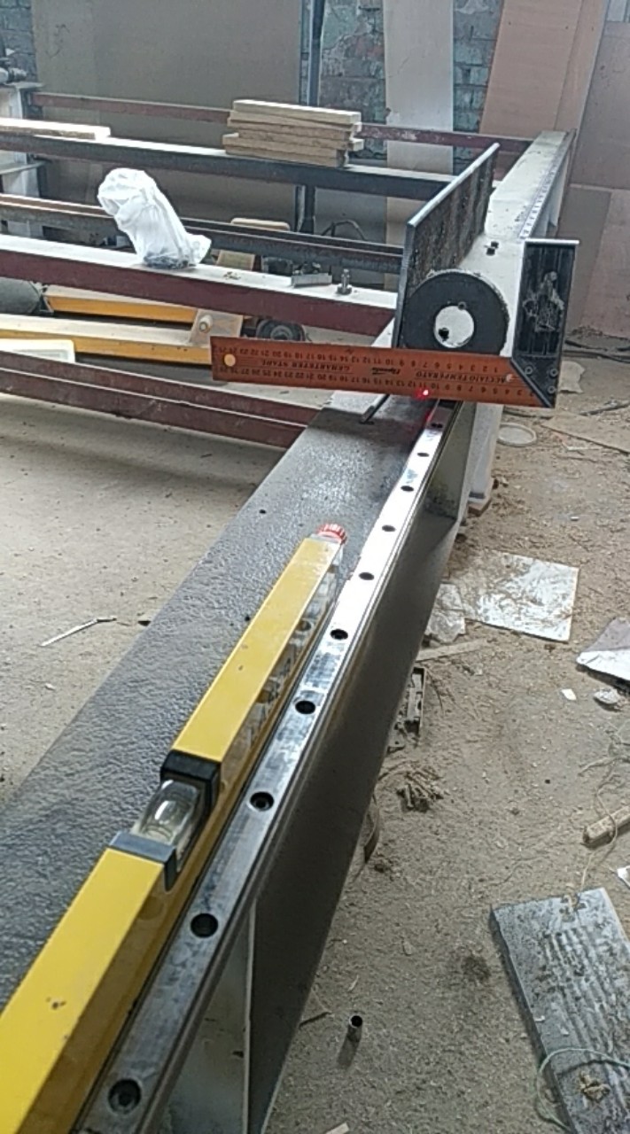 Вояю станок 3200х2000х300. Основа - фрезированный 380тый швеллер. После монтажа рельсы(HIWIN-20) выявился уход центра относительно краев на 1,5-2 мм (насколько можно судить по лазеру). Спецы, подскажите - как беде помочь?! Есть 2 варианта - либо во оптической оси - но нужно будет поворачивать станок, т.к помещение узкое(что хлопотно), либо откатать по индикатору - но тогда - что взять за базу?? Если строительное дюралевое правило - то как убедиться в его ровности? Была идея натянуть проволоку 2мм, но как это реализовать, исключив провесания???? Какие будут мнения?