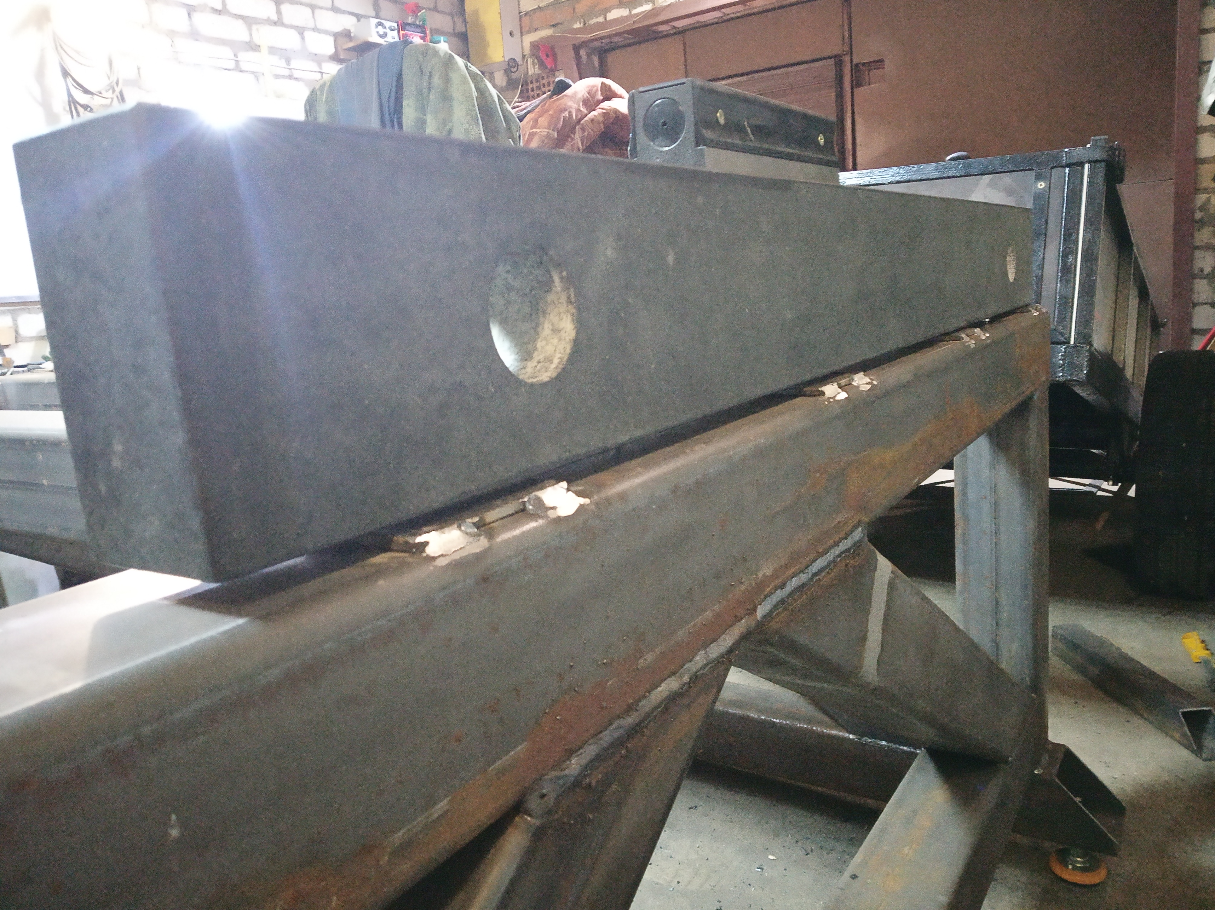 Сегодня закончили выравнивать станину станка.