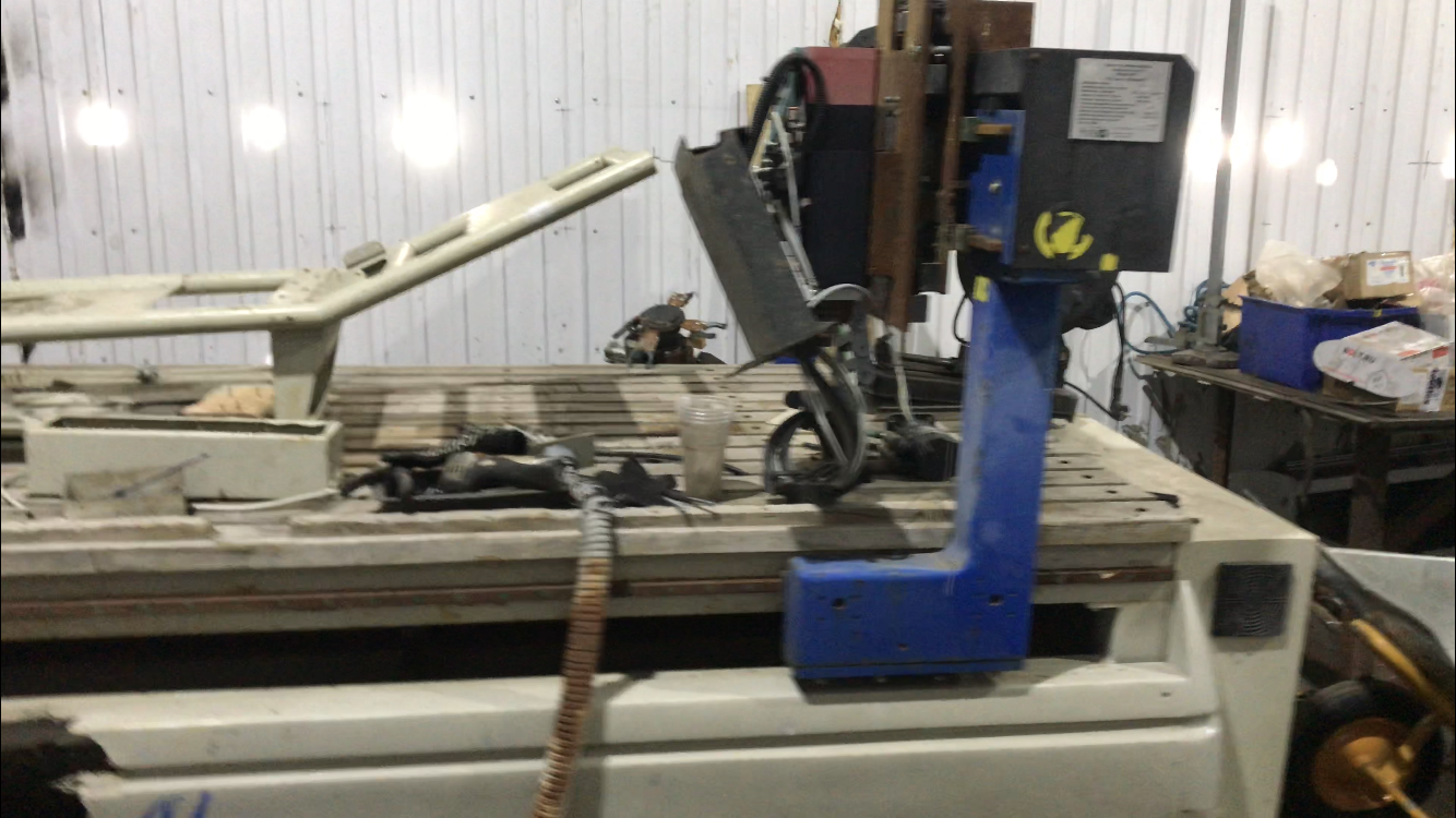 Урвал фрезер по пути в металлолом за не дорого, станок пару лет на улице пожил, собственно взял из за готовой механики на чугунной фрезерованной раме, да и портал мощный. Выглядит как будто на войне побывал