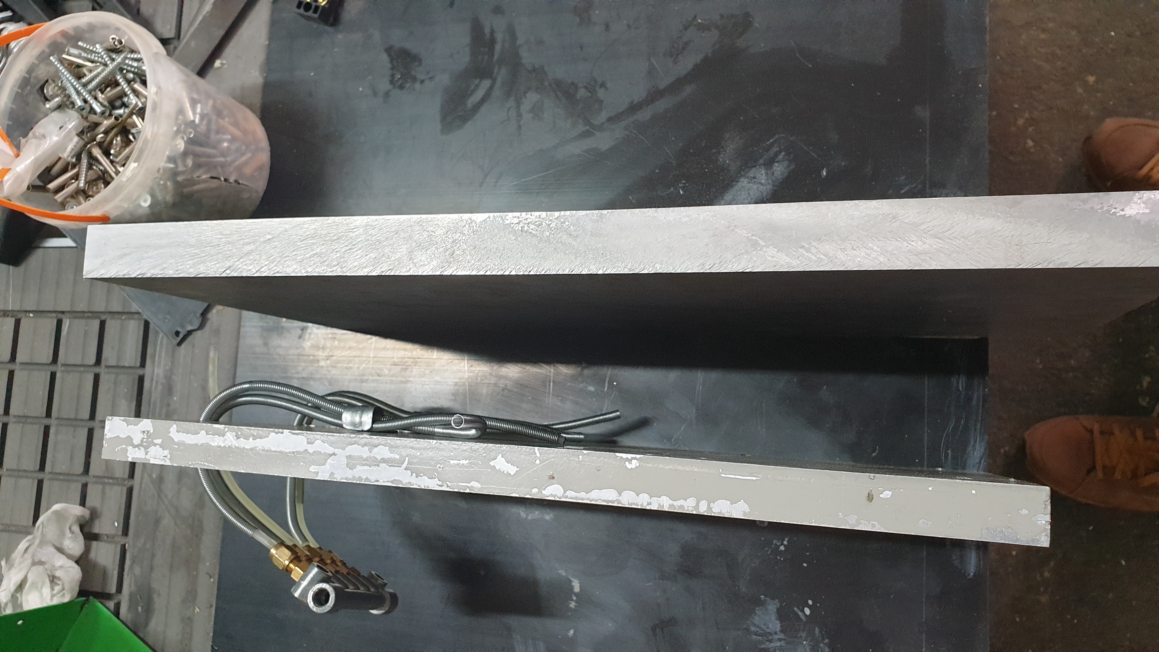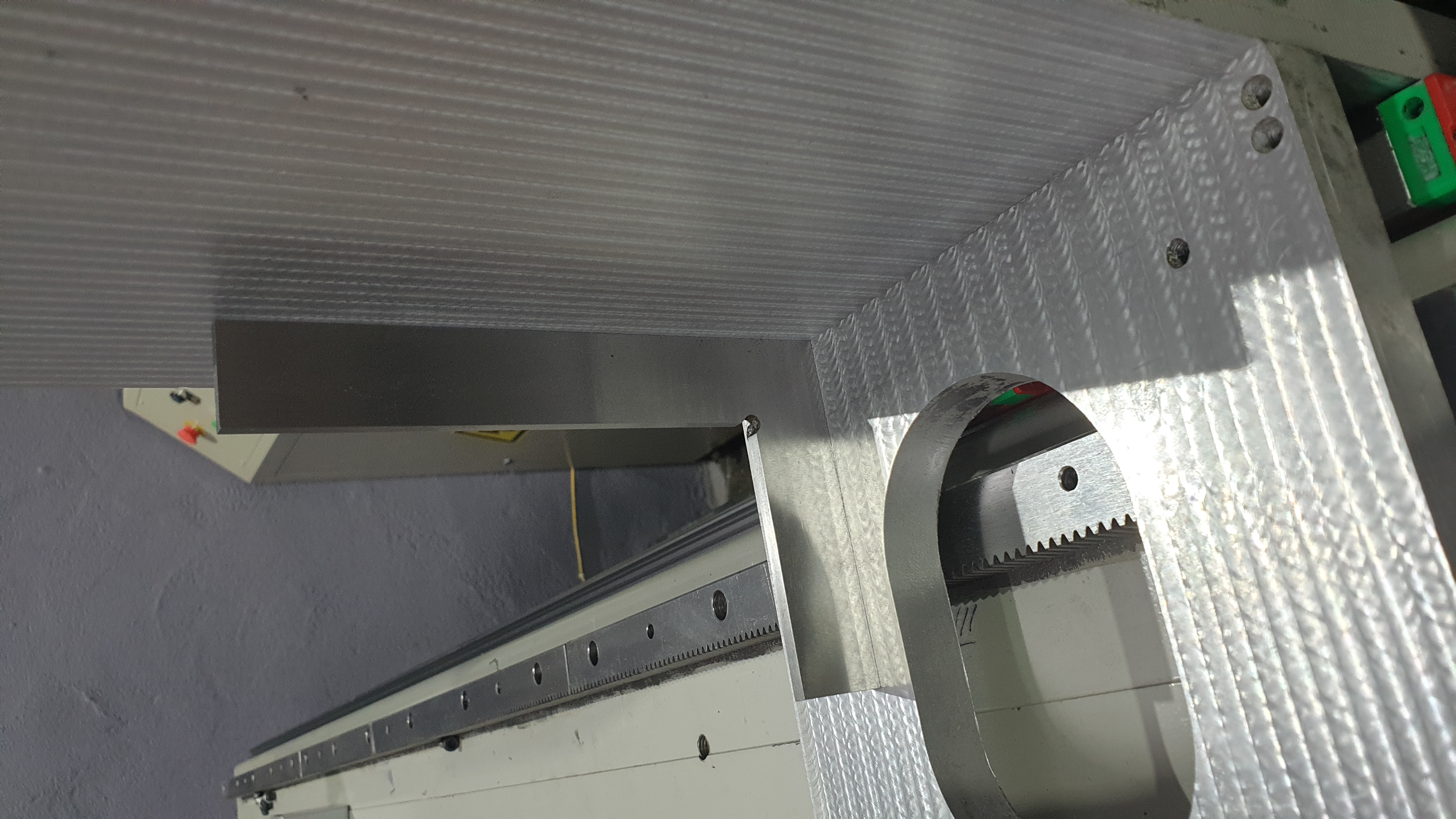 Похоже портал придется скидывать, опоры на каретки встают не равномерно. Все встает на краску + нижние рельсы свернуты относительно друг друга. Снятый наклеп сильно исправил ситуацию, но полностью проблему не решил.
