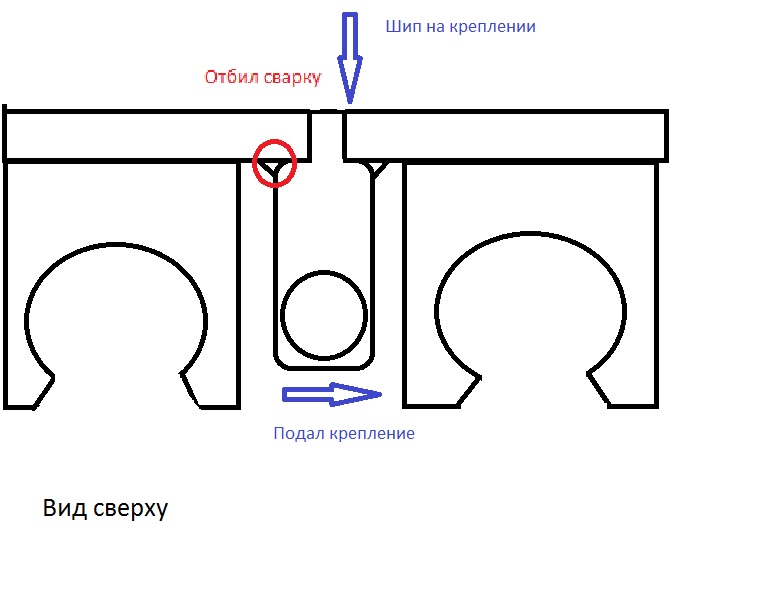 Часть нагрузки несёт шип на схеме, сварка там пару точек (прихватки) с одной и с другой стороны.